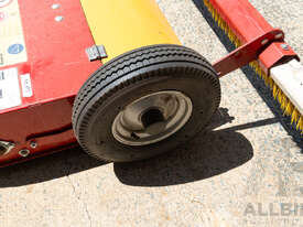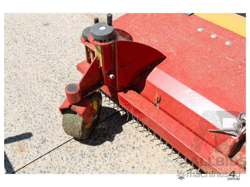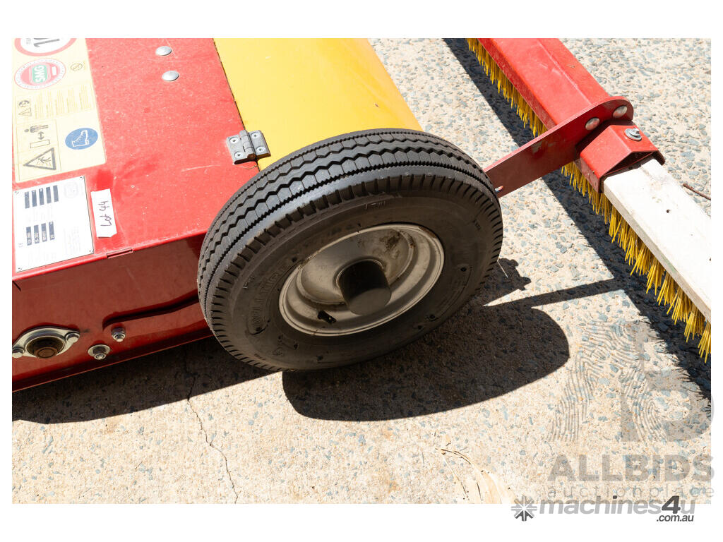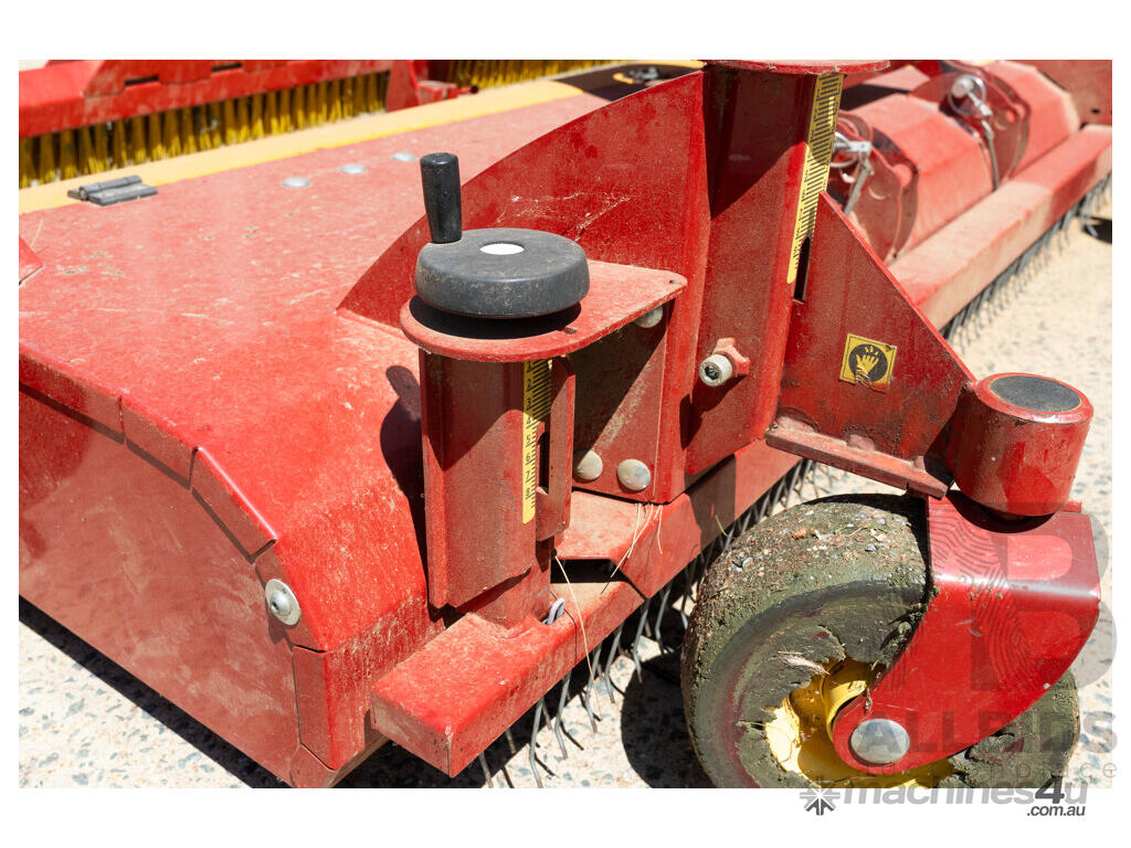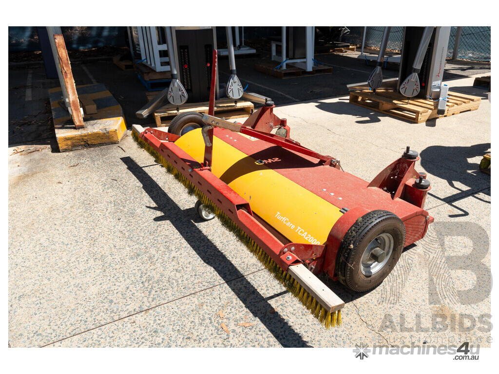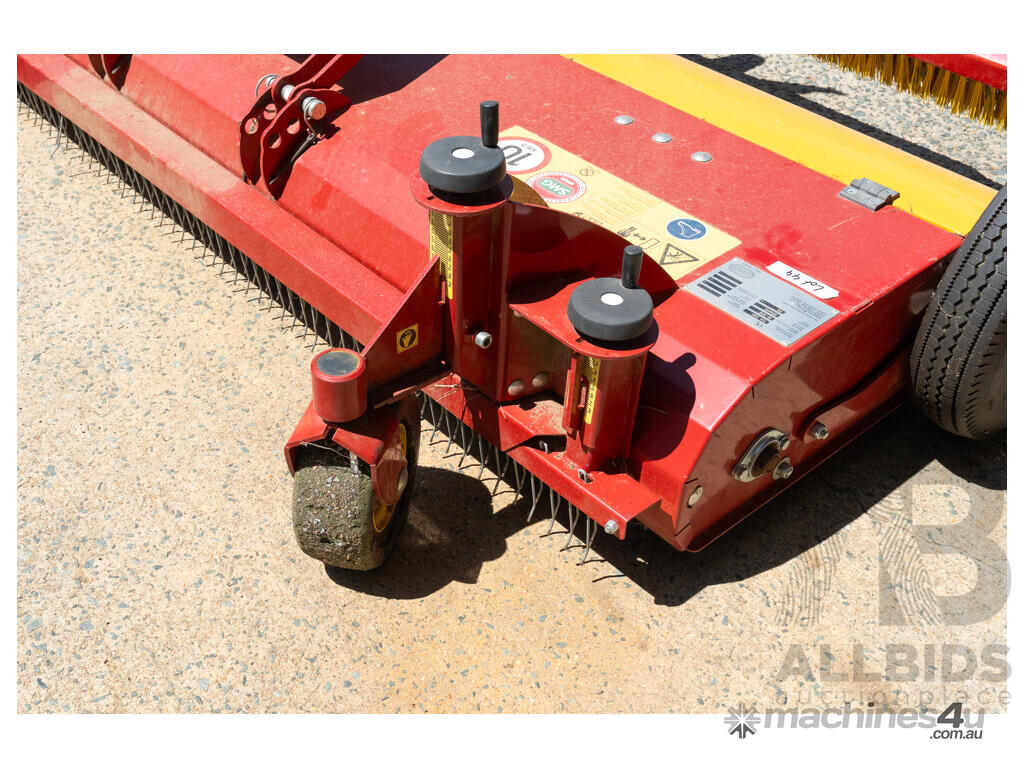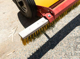**TurfCare TCA2000** maintains any kind of infilled synthetic turf pitches. The wheel drive makes the equipment independent from any hydraulic or power shaft drives. Therefore, the TurfCare can be pulled by various vehicles such as small compact tractors or quads. The working depth can be precisely set and locked via two adjusting spindles. The vibrating screen can be precisely adjusted with variable settings from 4 – 10 mm depending on the degree of pollution and the grid size of the infilling material. For the pass of narrow doorways, the two transport rollers can be folded out and the tow bar can be raised up.