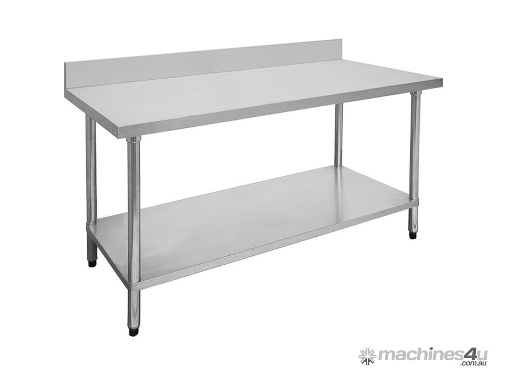 304 Grade S/S Work Tables with Splashback. 1.2mm 304 grade stainless steel top Galvanised steel undershelf & legs 900mm high with 100mm splashbacks Hygienic & easy to clean Flat packed for easy self-assembly Load Rating: 220kg 0600-6-WBB Economic 304 Grade Stainless Steel Table with splashback 600Wx600Dx900H 2 Years Parts only Warranty Depth: 600 mm | Width: 600 mm | Height: 900 mm | Price: $329 | Manufacturer: Modular Systems | Warranty: 2 Years Parts Only