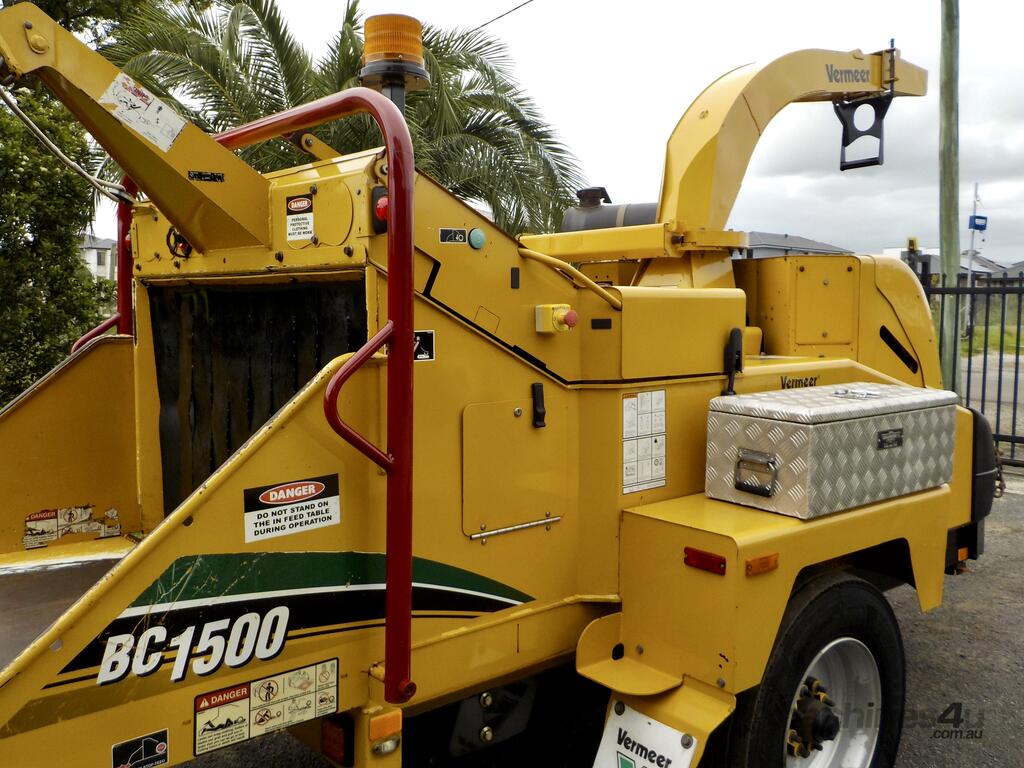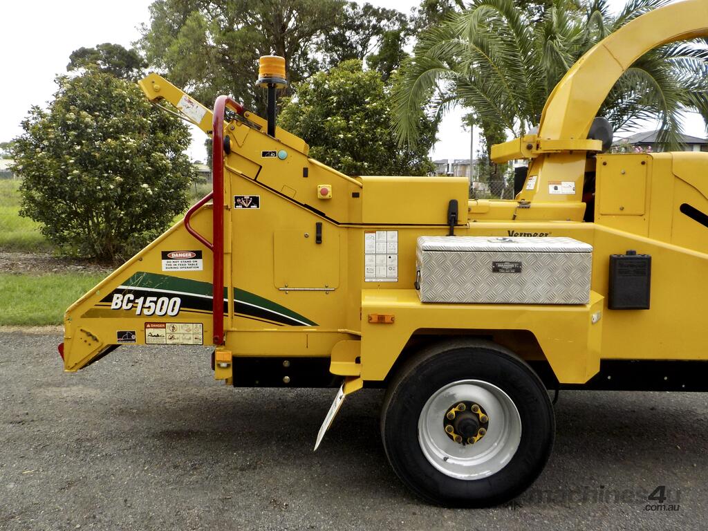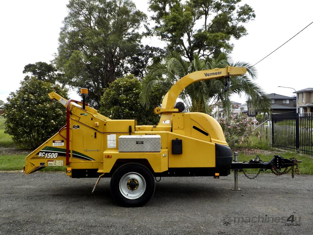 On offer is an immaculate 9/2015 Vermeer BC1500XL 15” Commercial Wood Chipper, coming from a Government Department / Local Shire Council with a full. This machine presents in exceptionally clean and tidy original condition, still wearing its factory paint, and shows extremely low wear for its age.