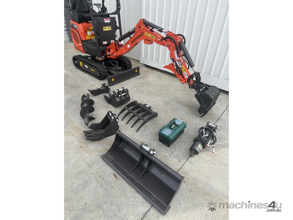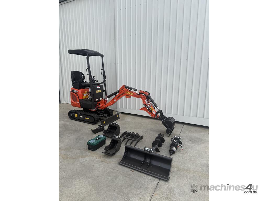 Brand new 2025 Pilot Control 1.2 T Excavator now with HYDRAULIC THUMB GRAB, 2 speed Tracking, upside down boom to protect boom cylinders and 3 Cyl Kubota Engine