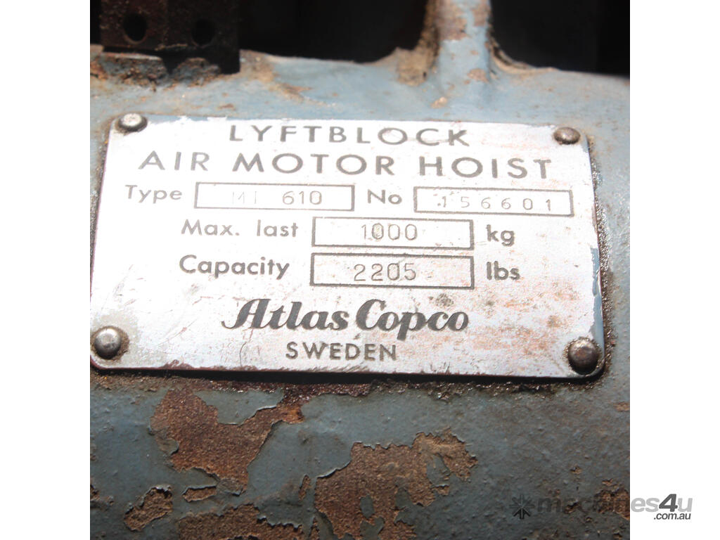 1 Ton Atlas Copco pneumatic hoist 4.5m chain :      $1,155 AUD($1,270 Inc. GST)