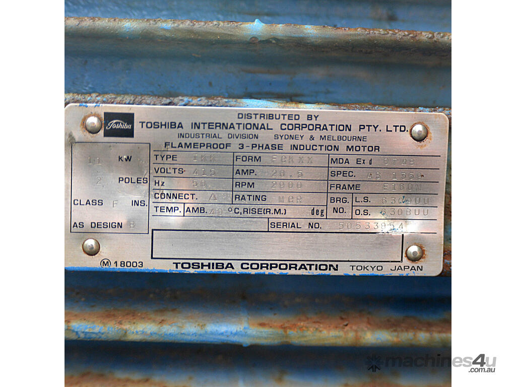 Goulds 1 x 2 inch pump Toshiba 11kW 15 HP 2 pole flame proof 3 phase motor