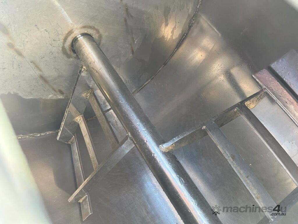 1000L Paddle blender.. 3 Phase 415V. Inlet 660mm X 480mm with stainless grate. Stainless steel paddles and tank. Mild steel frame. Forward and reverse. 10 RPM Side bottom discharge 100mm x 100mm manually operated. Runs