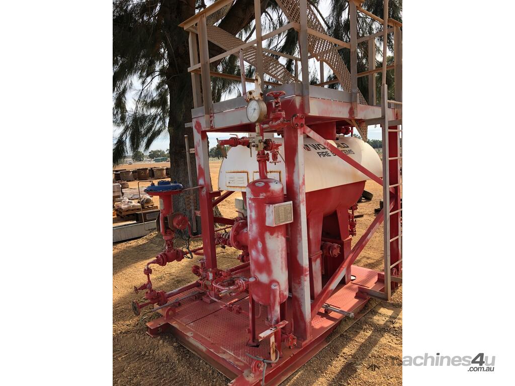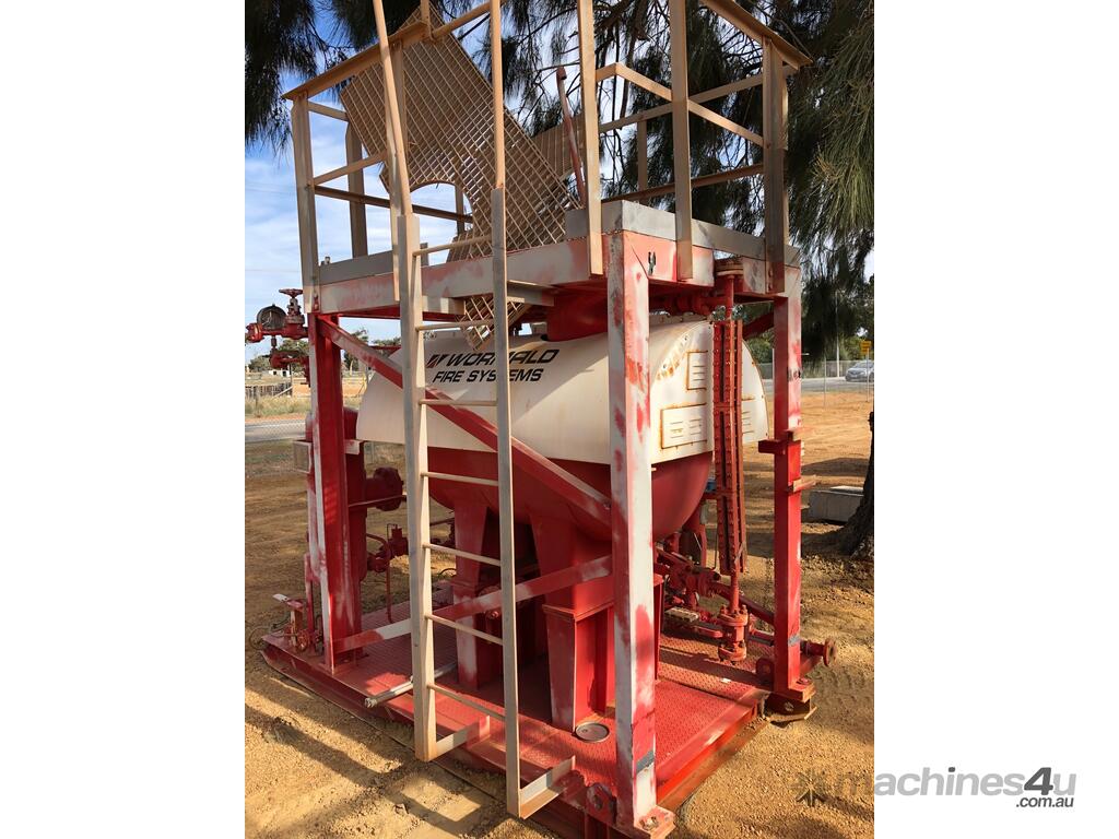 > Comprises 1000L steel tank, stand, framework, ladder and various valves.