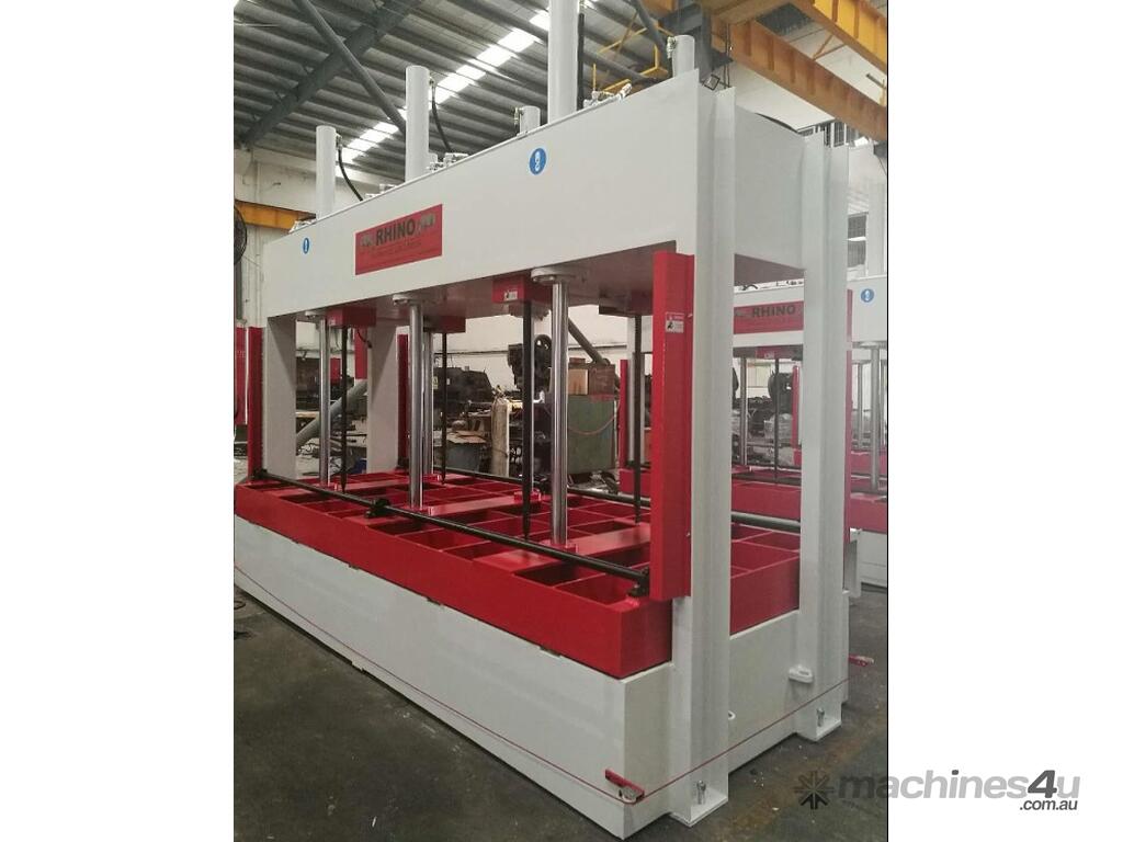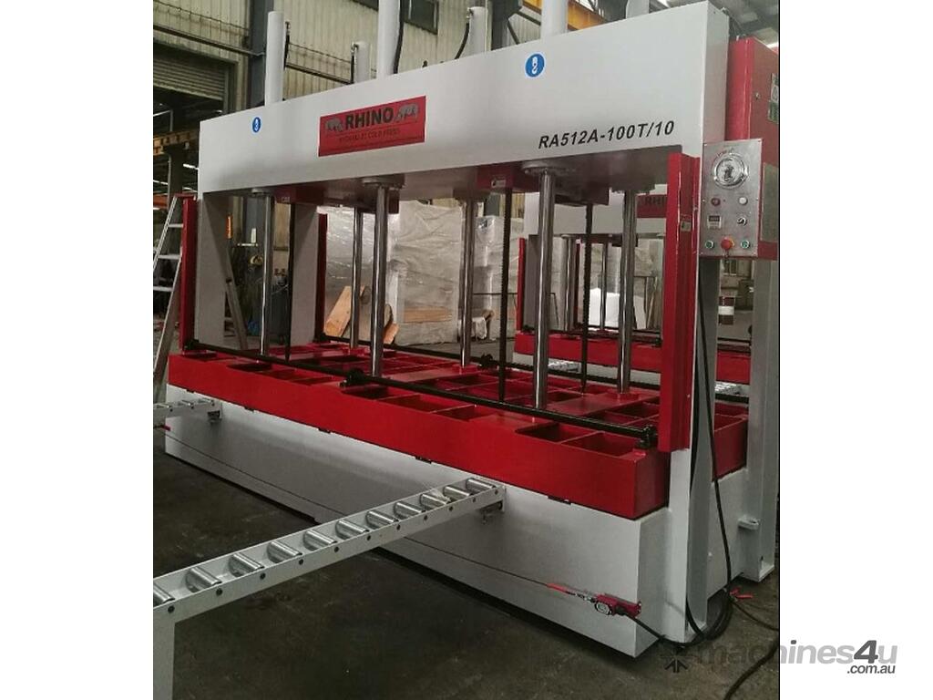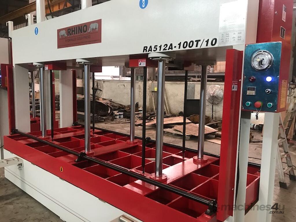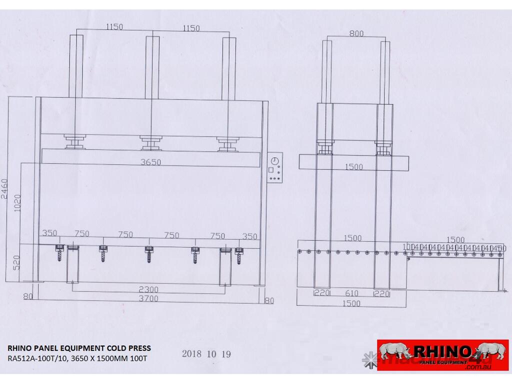 NEW RHINO HYDRAULIC COLD PRESS 100T Max. Pressure with large platen 3650 x 1500mm. Ideal Custom Doors and Benchtops!