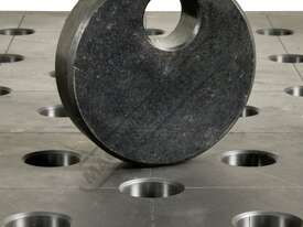 This precision machined eccentric pad can assist in supporting material where small adjustments are required & can be used on any welding table with 28mm fixturing holes to allow for infinite adjustments in fixturing.