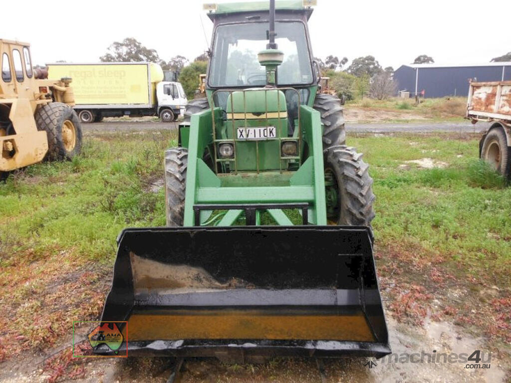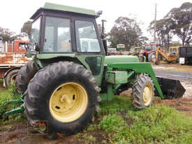 John Deere 3130 FEL ~ 5.4L 6-cyl diesel ~ 96.5 Hp ~ 9,239 Hrs ~ 12 speed ~ FWA ~ 3pl, PTO & single remotes ~ Gp bucket and hay forks included ~ Starts runs drives and stops ~ Clutch & brakes working ~ FWA not engaging (possibly electrical fault) ~ Neat clean tidy tractor, owned by older gentleman who maintained & looked after it (see photos inside cab).