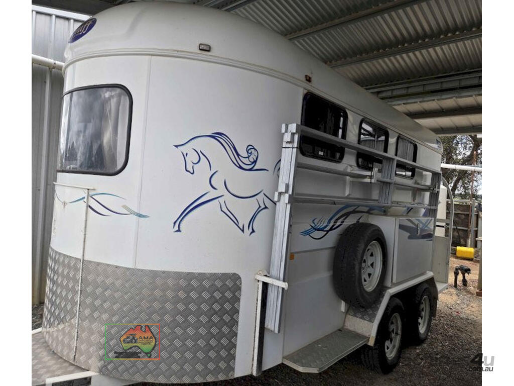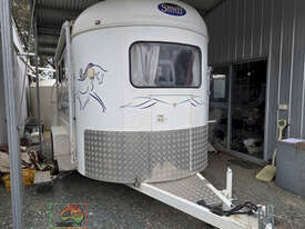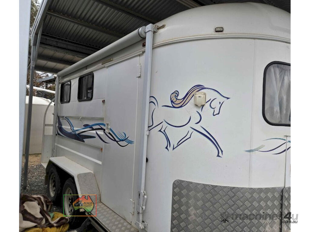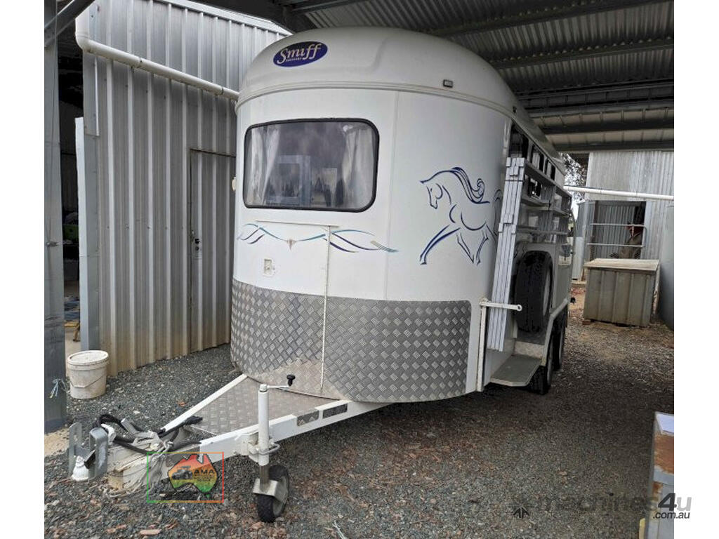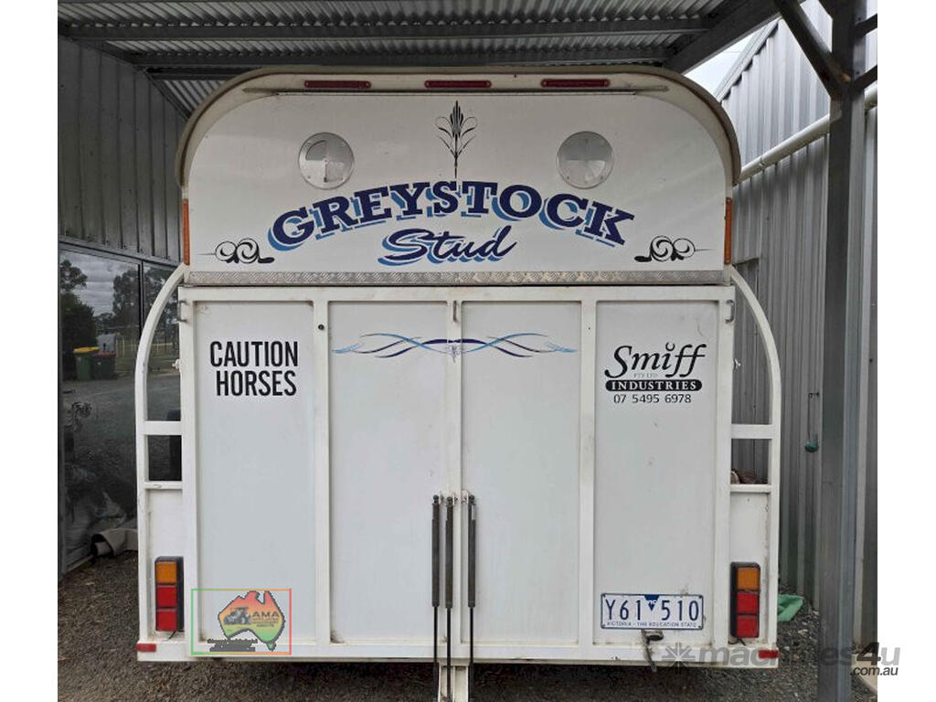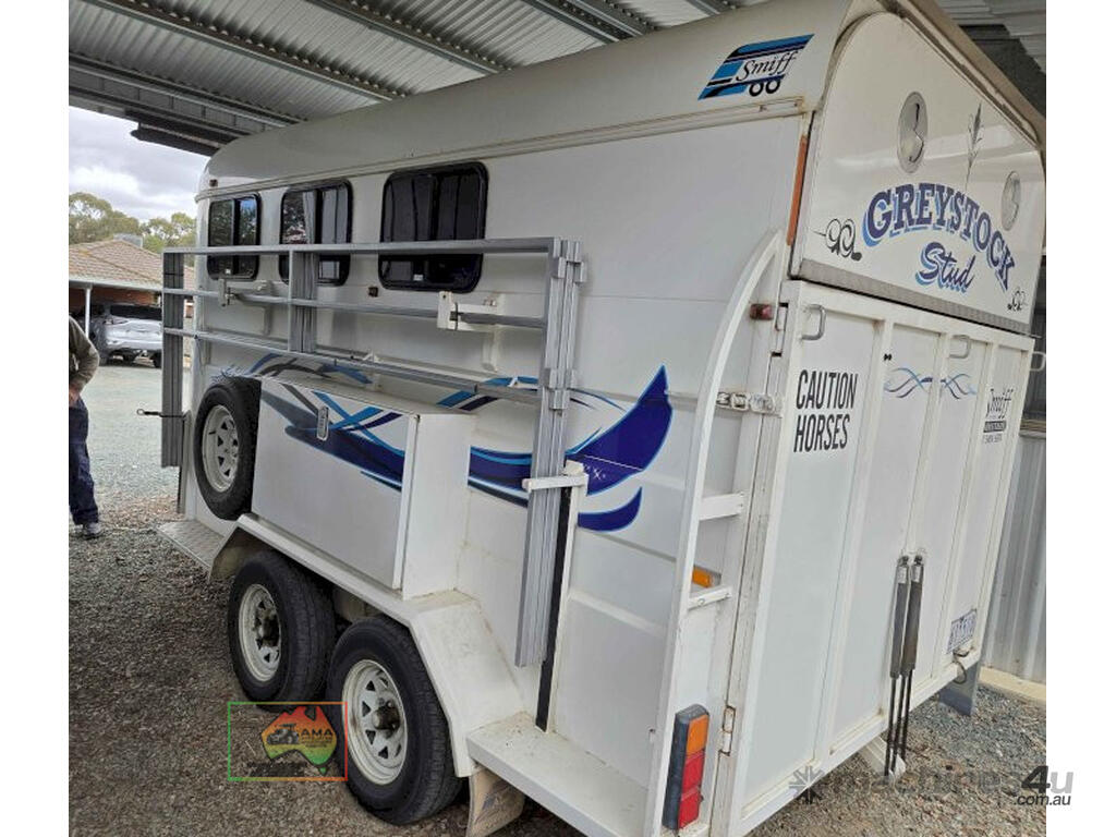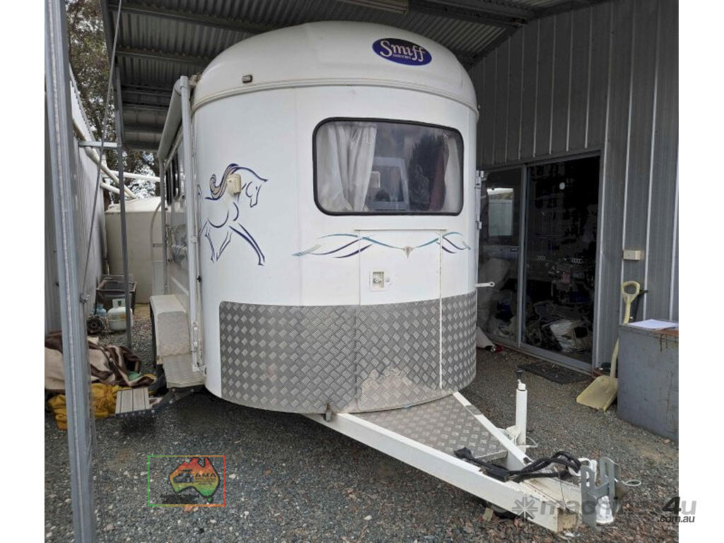 Near New Horse Float ~ Aust. made by Smiff Industries (VIN: 6K9SM1FF1EC110012) ~ Electric brakes ~ Anderson plug & Deep cycle battery ~ 2 Horse angle bays ~ Front & side Tack Boxes ~ Rear swing out Tack Box/cupboard ~ 4x Yard panels ~ Front kitchen with microwave & 12v/240v fridge ~ Water belly tank with 12v pump ~ Roll out Awning ~ Caravan step ~ Current Vic Rego 08/03/2026 ~This is a Fantastic State-of-the-Art Horse Float, set-up for travelling & camping away at horse events. ~ Presents in perfect condition ~ To be sold less that 1/2 replacement cost. ~ Suit NEW BUYER.