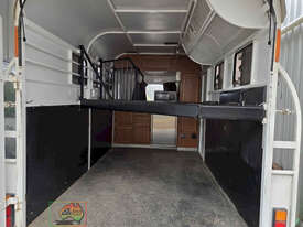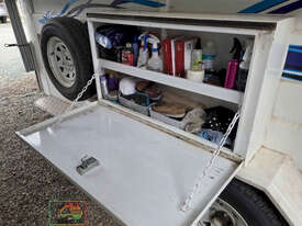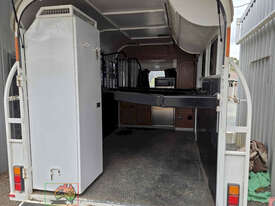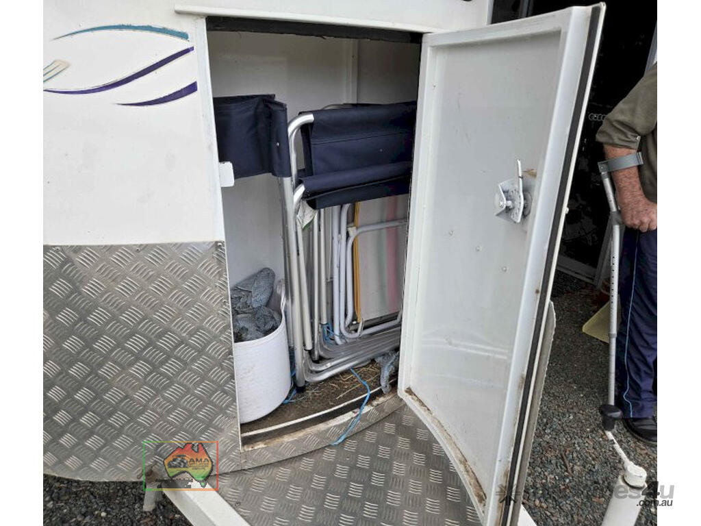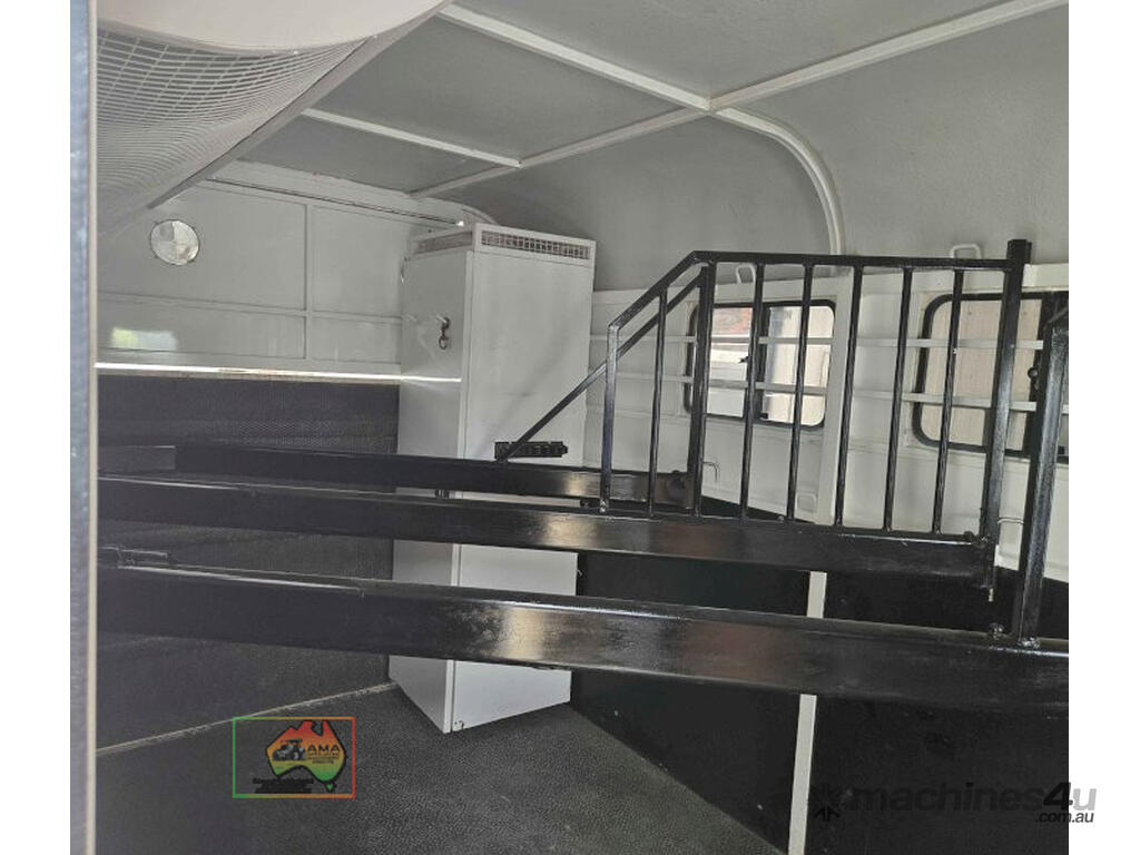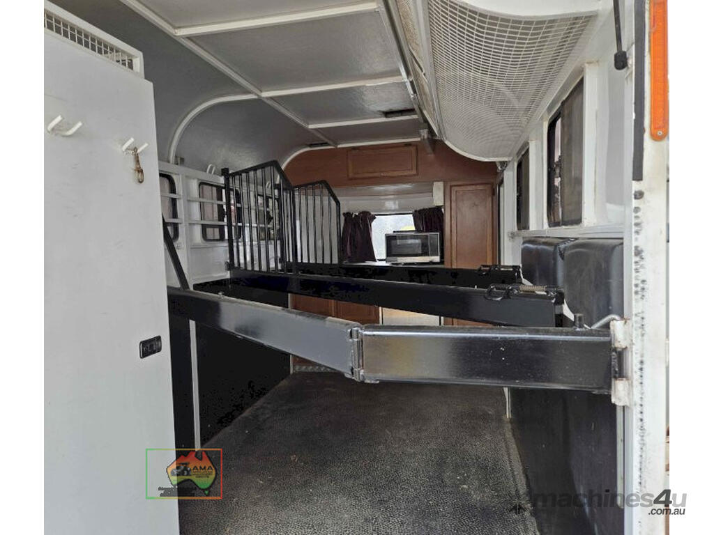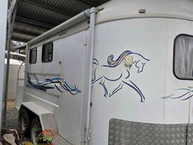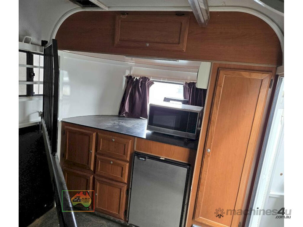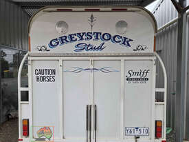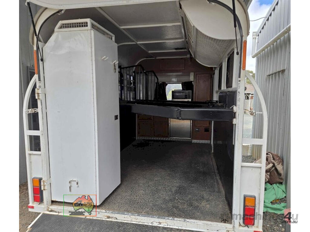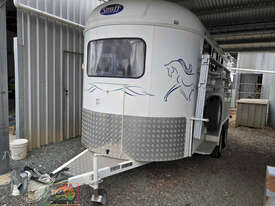 Near New Horse Float ~ Aust. made by Smiff Industries (VIN: 6K9SM1FF1EC110012) ~ Electric brakes ~ Anderson plug & Deep cycle battery ~ 2 Horse angle bays ~ Front & side Tack Boxes ~ Rear swing out Tack Box/cupboard ~ 4x Yard panels ~ Front kitchen with microwave & 12v/240v fridge ~ Water belly tank with 12v pump ~ Roll out Awning ~ Caravan step ~ Current Vic Rego 08/03/2026 ~This is a Fantastic State-of-the-Art Horse Float, set-up for travelling & camping away at horse events. ~ Presents in perfect condition ~ To be sold less that 1/2 replacement cost. ~ Suit NEW BUYER.
