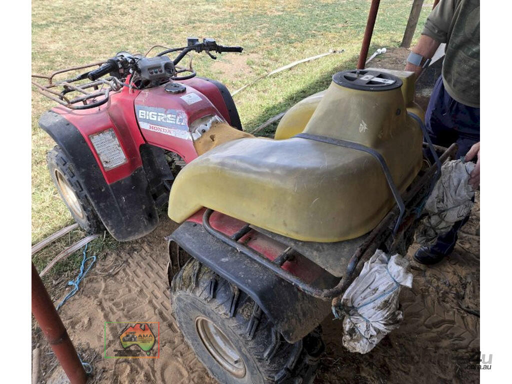 1992 Honda 300 Big Red 2x4 Quad Bike ~ Rear spray tank & boom included ~ Not used for weeks, started instantly, no smoke & drove well (See video) ~ An oldie with rock solid reliability.