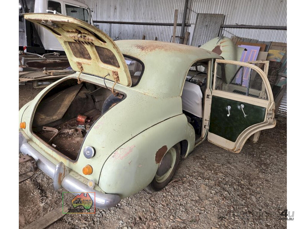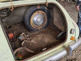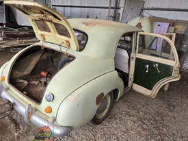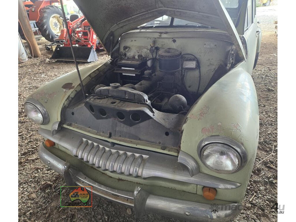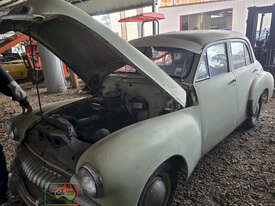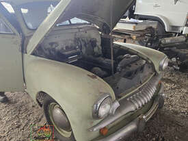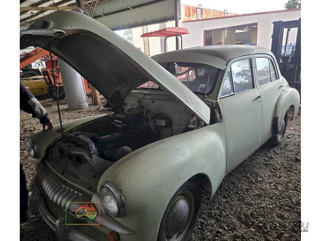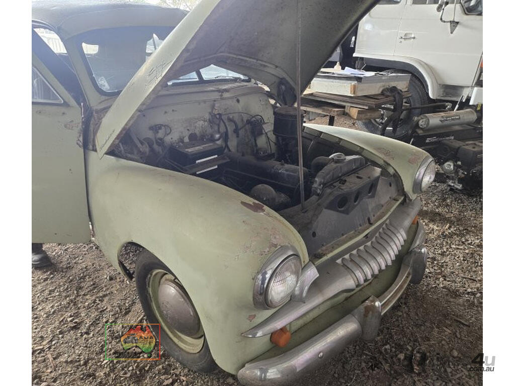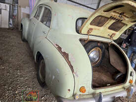 Original March 1953 Holden FX Sedan 48-215 ~ This car is believed to have had only 2 previous owners ~ No dents, rust or repairs ~ Original paint (Olympic Green), leather seats (colour = Green Vinyl), engine (No. L379902) & running gear ~ Starts, runs & drives fine (see video) ~ Brakes will need attention ~ Speedo reading 14,976 miles ~ Electrics converted to 12v ~ Original radio ~ Previous owner has fitted FJ front grill, but has an as new re-chromed FX grill included ~ also included, spare bonnet, boot lid, original FX grill, bumper & bonnet hinges. ~ Has an original style towbar with pigtails ~ Door cards appear to have been recovered/replaced ~ Spare wheel, jack etc... in boot ~ Has broken bonnet hinge & subsequent minor bonnet damage (see photo) ~ This complete, virtually un-molested FX Sedan, is a VERY RARE FIND (in this condition) ~ Ready for full restoration or preservation of an untouched 77 year old Australian icon. ~ This is as ORIGINAL as they get.