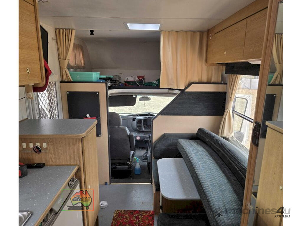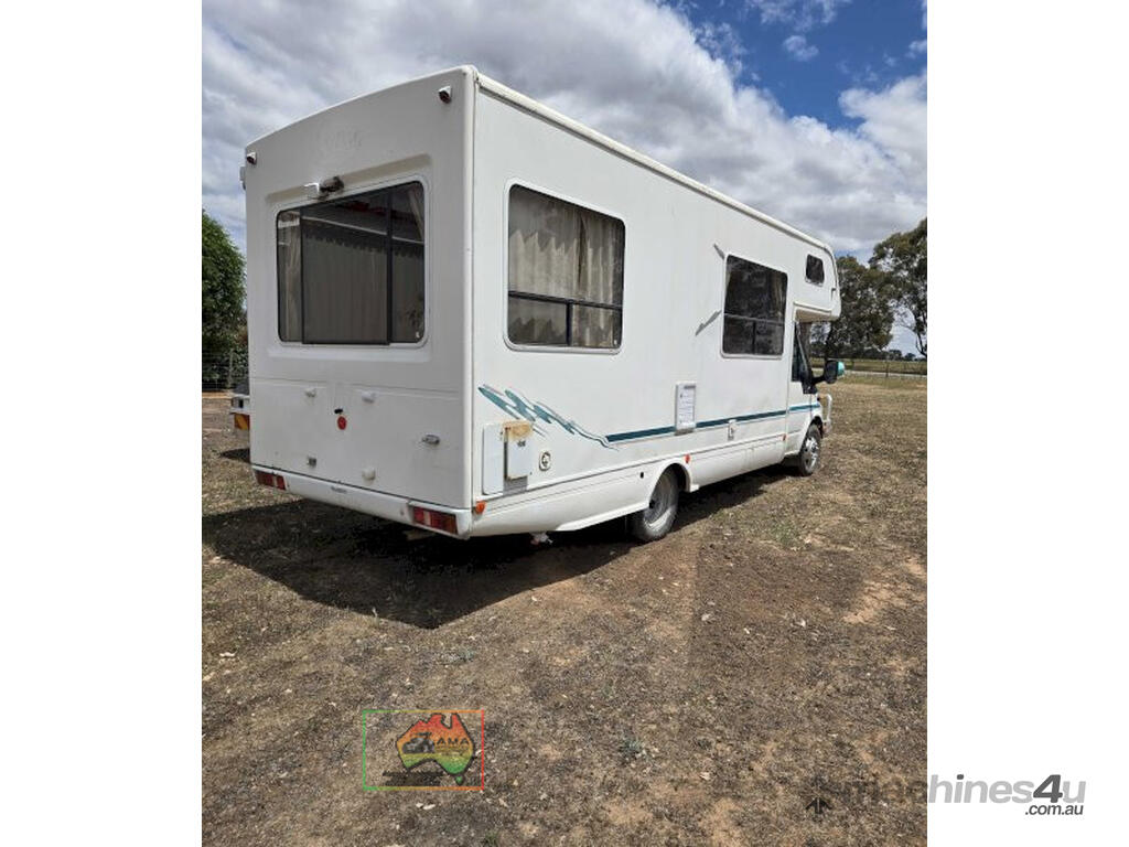 2002 Ford Transit Campervan ~ 125-T430 Gas injected diesel engine ~ 5sp Manual ~ 256,536 Kms ~ Vic RWC (ready to register) ~ 6 New tyres ~ New windscreen ~ Air con ~ Alloy Bullbar ~ Fiamma F45 awning ~ Shower, basin & toilet ~ TV, R/C air, new double mattress ~ Fridge, microwave, oven, hotplates & kitchen sink ~ Water tank with electric pump. ~ Complete & ready to use.