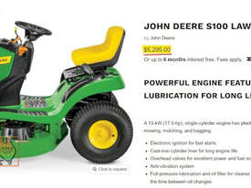 John Deere S100 Ride-on Mower ~ 19.5Hp ~ 42" cut ~ Just serviced (over $500 spent) ~ Replacement cost = $5,295 ~ A good value reliable mower.