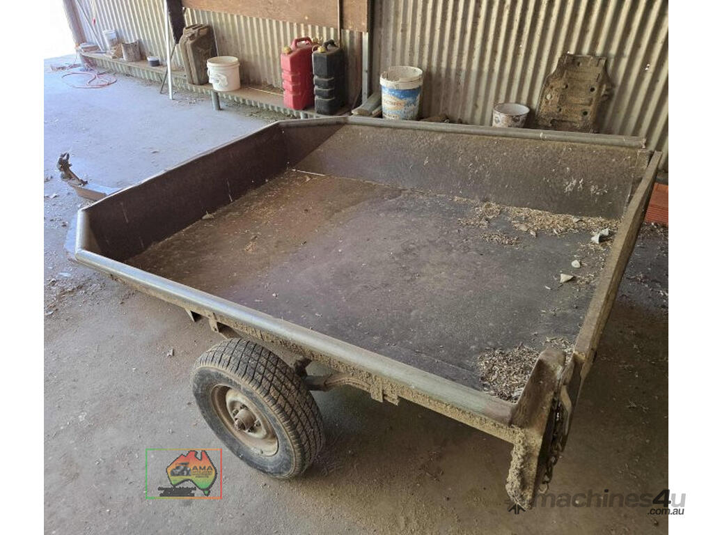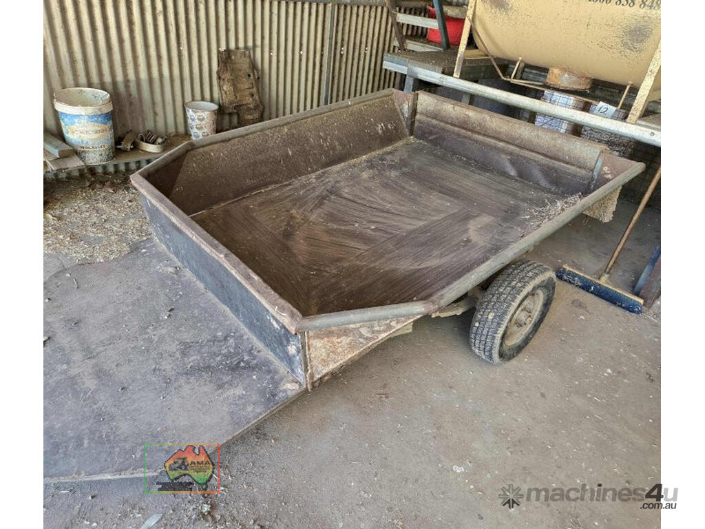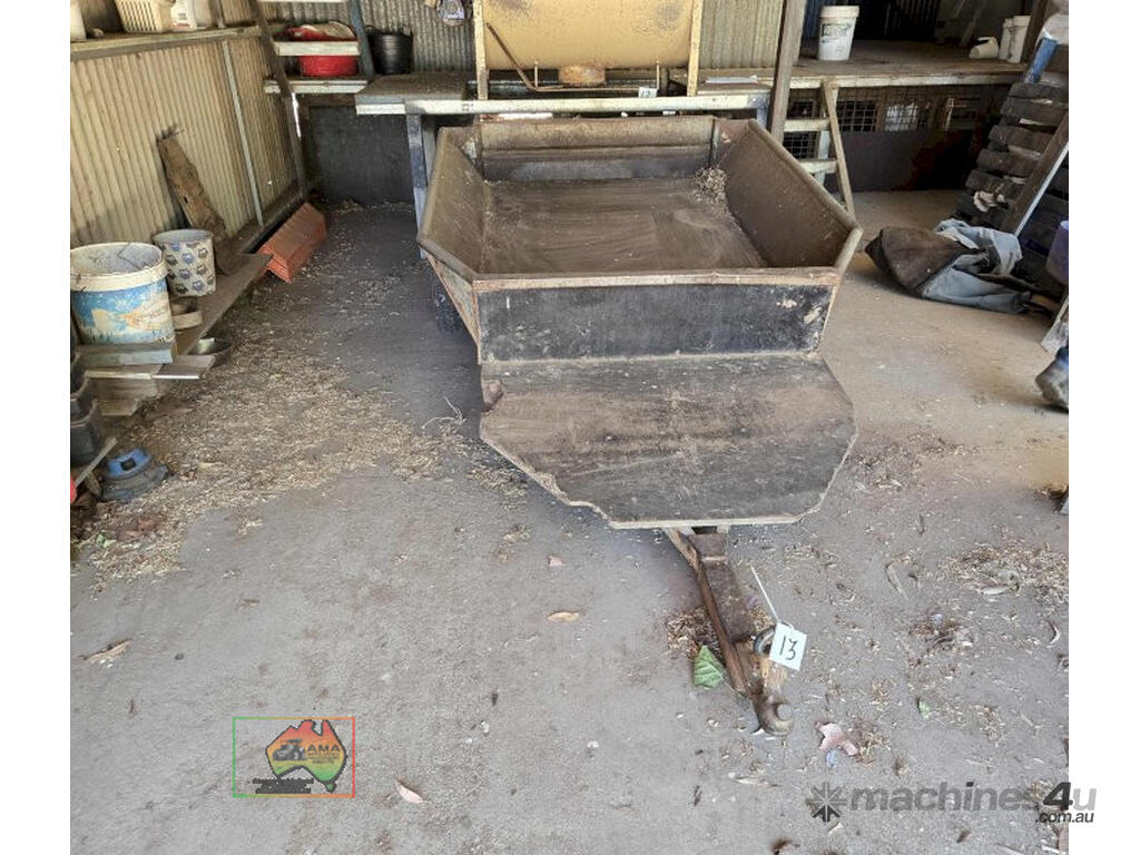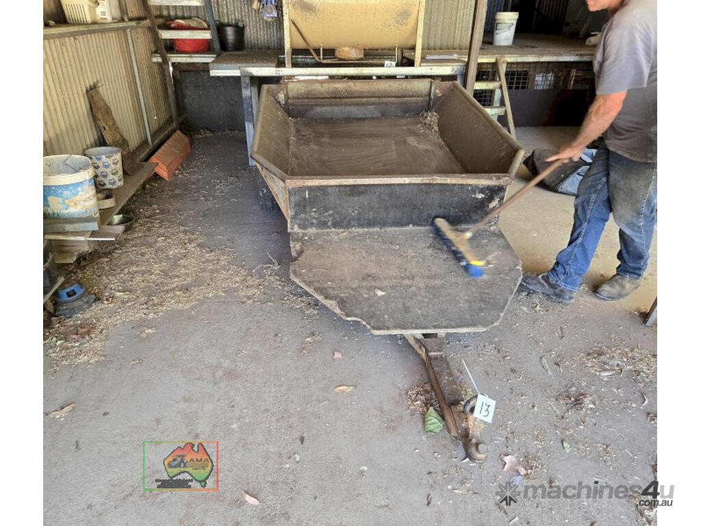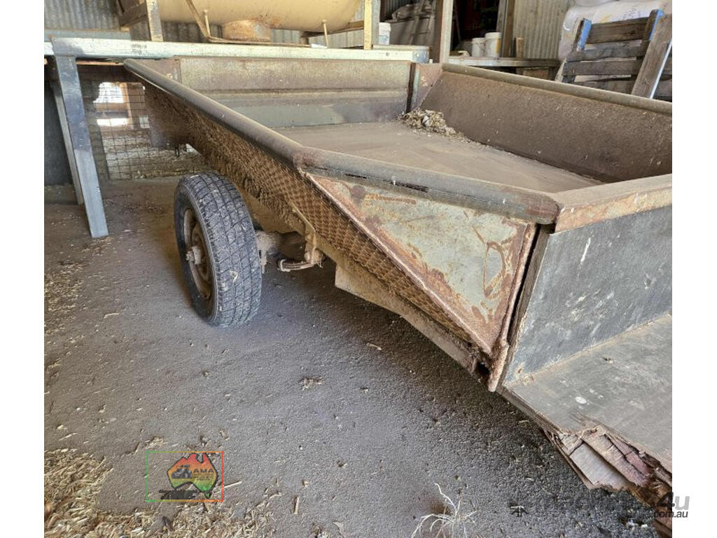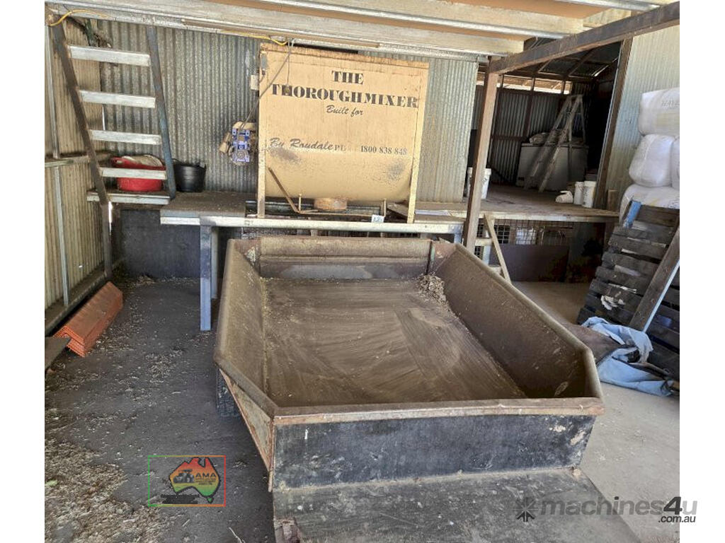 Direct Horse Feed Trailer ~ Made from 6x4 trailer ~ Has angled sides with heavy rails ~ Park under Thorough Mixer to fill ~ Park in paddock for horses to feed out of trailer.