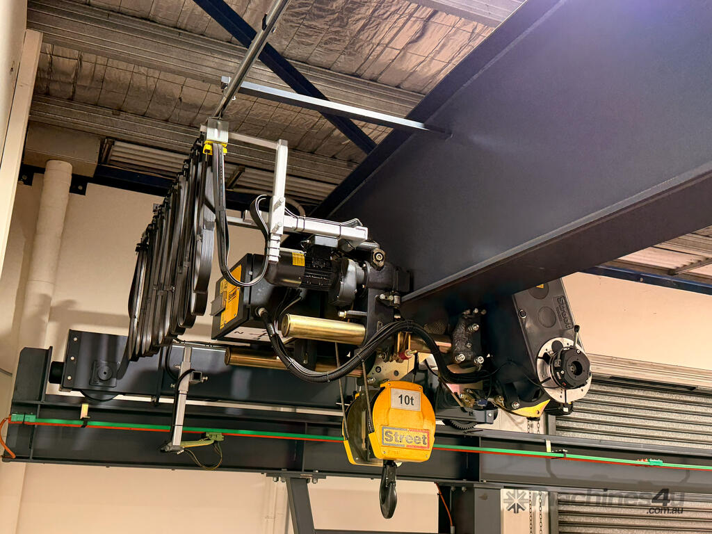 Premium-condition 10 tone free-standing overhead crane, approximately 5 years old and hardly used. Supplied as a complete system with steel support columns and runways, making it ideal for relocation and installation without relying on an existing building structure. Single girder design with 16.35 m span and 6 m lift height. Installed and fully testable. A rare opportunity to acquire a modern crane system with minimal use, ready for industrial applications.
