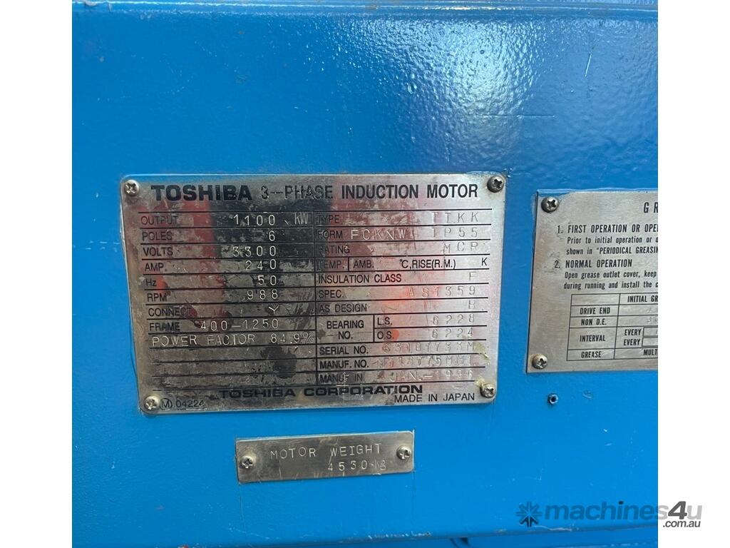1100 kw 1500 hp 6-pole 988 rpm 3300v 3.3kv 400 frame AC Electric Motor Toshiba Type TIKK Form FCKNW Spec AS1359