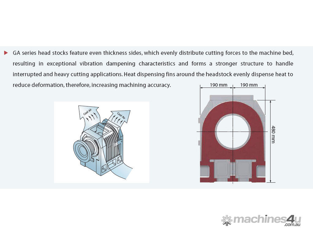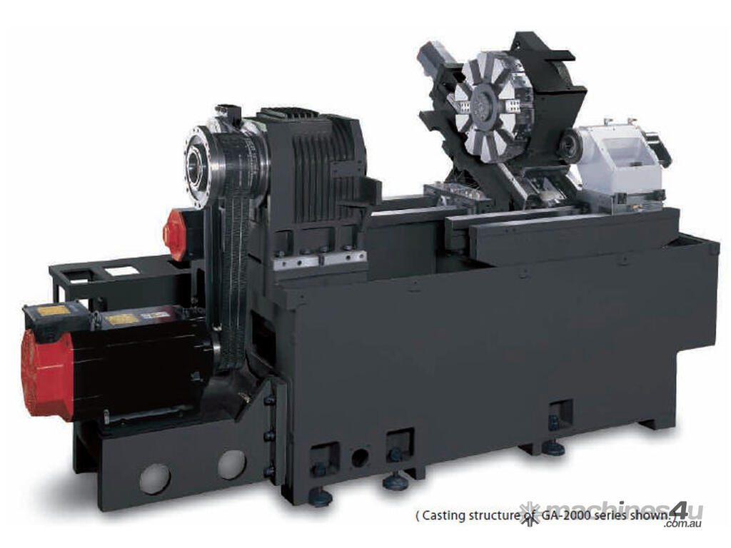 Engineered to handle heavy-duty turning applications with superb accuracy, the GA series ultra-performance turning centres combine extremely powerful high torque motors, super rigid box way constructions, and large diameter servo indexing turrets to bring you The Ultimate Machining Power®. The GA series will help you be more competitive by achieving faster cycle times with heavier cuts, faster machine movements, and allow cutting of tough material efficiently. You'll also appreciate the reliability and durability that our machines are known for Plus, with more standard features than any other machine on the market today, many say it's the best investment they have ever made.