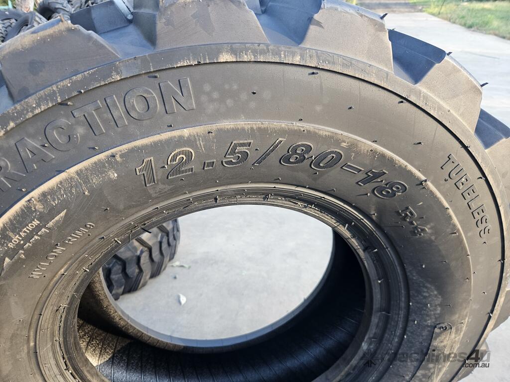 Looking for reliable, heavy-duty tyres? Our 12.5/80-18 Tubeless Tyres with a 12 Ply R4 pattern are in stock and ready to go!