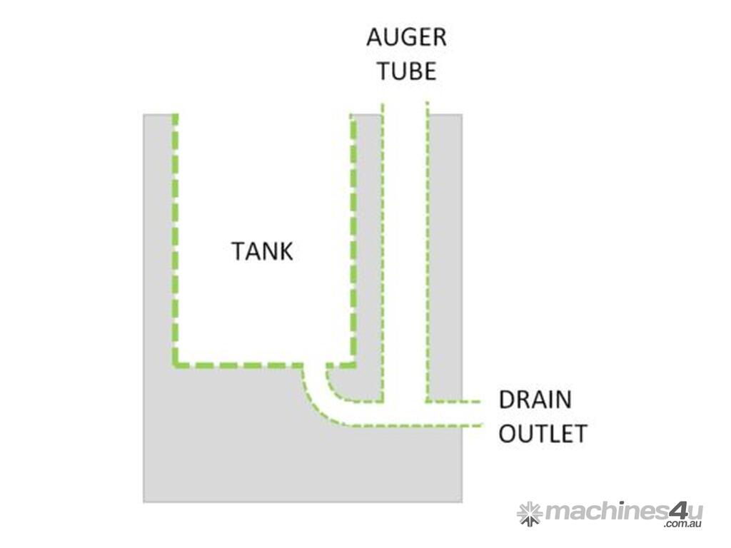 - Low-level drain outlet efficiently empties the tank and clears connecting pipes.