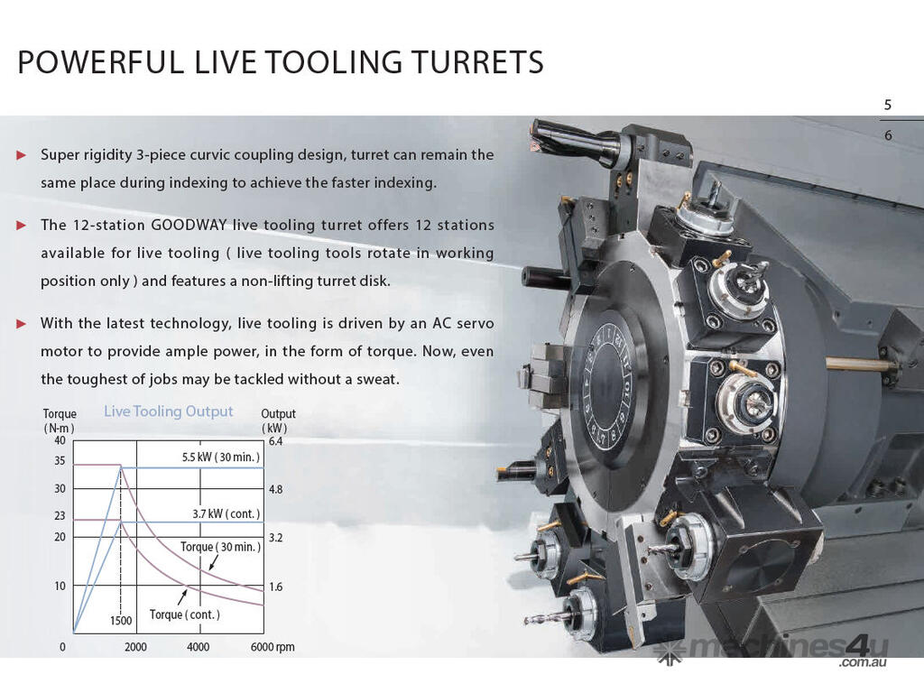 Since 1975 Goodway Machine Corp has specialised in the development and manufacture of high precision turning centres, currently Goodway produce in excess of 2,000 CNC Lathes each year and have grown to be one of the largest CNC lathe manufacturers in the world. Their machines are now well known in over 50 countries for their exceptional performance, quality and value and with over 75 model variants ranging from Ø32 ~ Ø205mm bar capacity, Ø6” ~ Ø24” chuck size, turning lengths up to 4000mm and 2 ~ 9 axis configurations, Goodway has the capability to meet virtually any turn / mill application. There really is a solution for every turning requirement in the Goodway range of Turning Centres!
