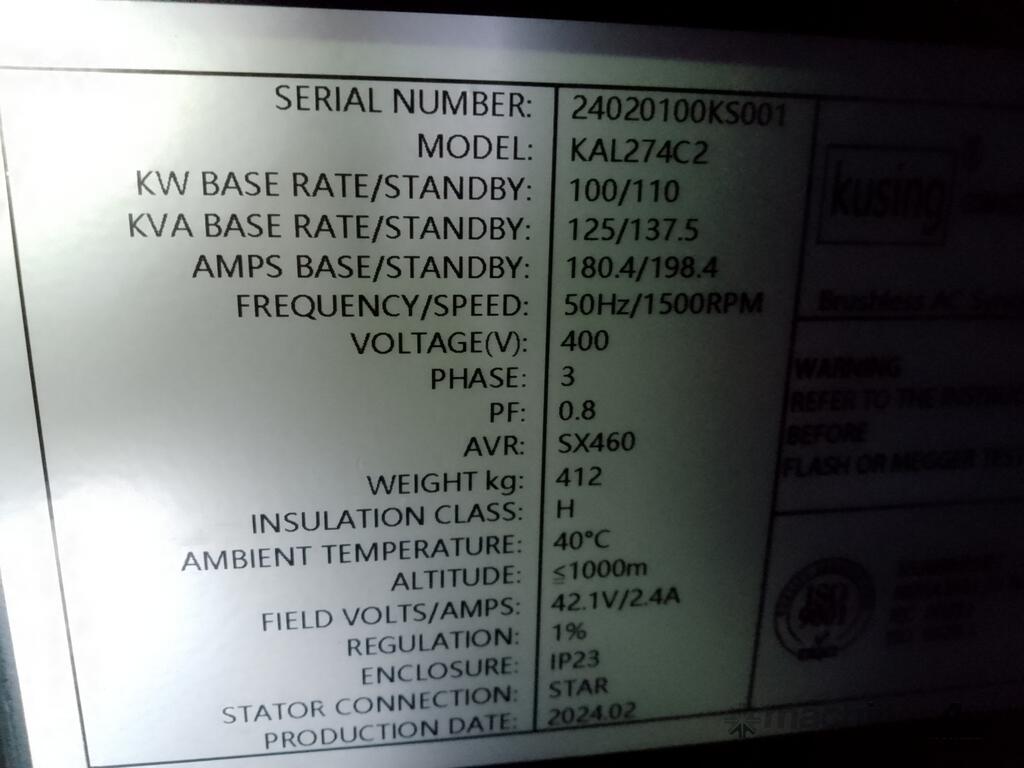 Alternator Model KAL274C2 KS001 4 Pole Synchronous + AVR
