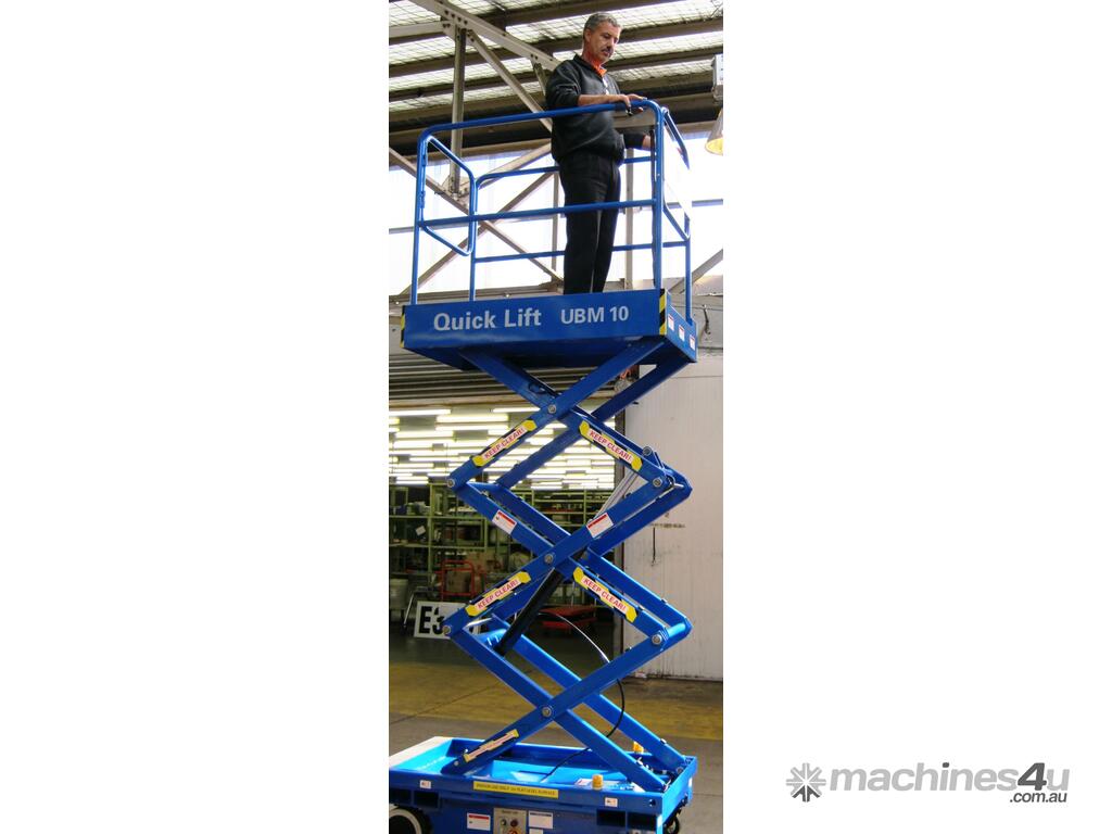Self-propelled UBM Quick Lift mini scissors allow operators to work safely and continuously at heights up to 5.9 metres when frequent platform re-positioning is required. Three-dimensional movement is controlled from the elevated platform. The compact footprint and tight turning radius of the self-propelled UBM Quick Lift mini scissor lifts make it the ideal choice for tasks demanding precise platform location in tight settings. Applications environments are similar to those listed under UB mini scissor lift series.