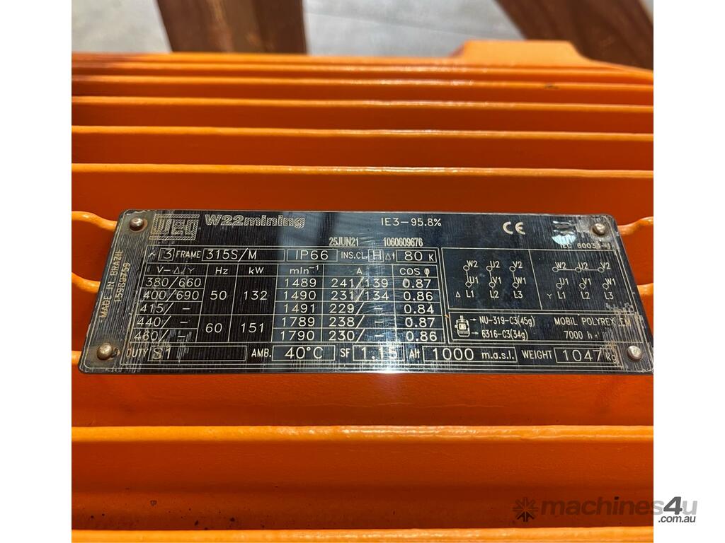 132 kw 160 hp 4-pole 1491 rpm 415 volt Foot Mount 315S/M frame Mining IP66 AC Electric Motor WEG Model KTE62 W22M unused