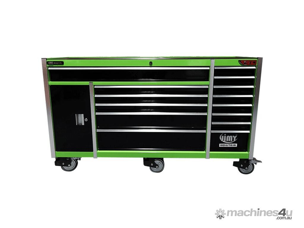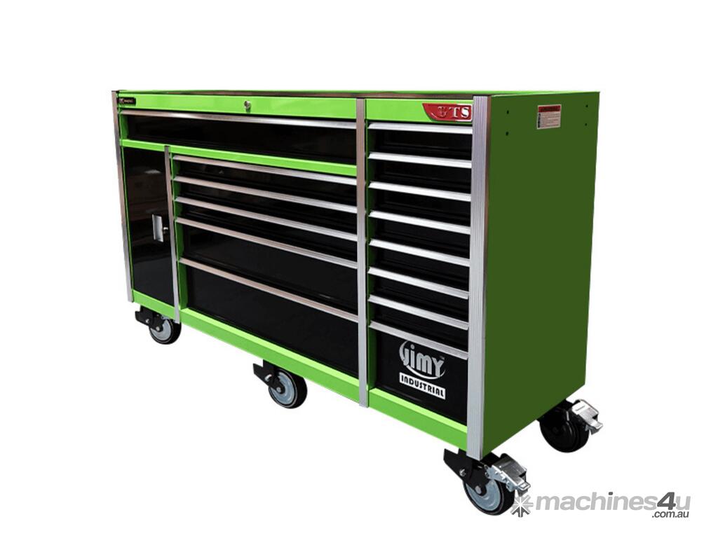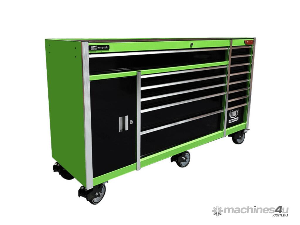 Jimy tool boxes are career spanning and built to last! Jimy tool boxes are fully modular to offer a number of storage combinations to fit your needs. With the extra deep 500mm drawers our 72” roller cabinet expands your storage capabilities and a massive 1680kgs in weight load capacity. It features 14 drawers with full-width drawer handles, pre-cut drawer liners and a single integrated barrel lock. Durable full extension ball bearings and a tough power coated finish make this storage a perfect fit for your home garage or commercial workshop.