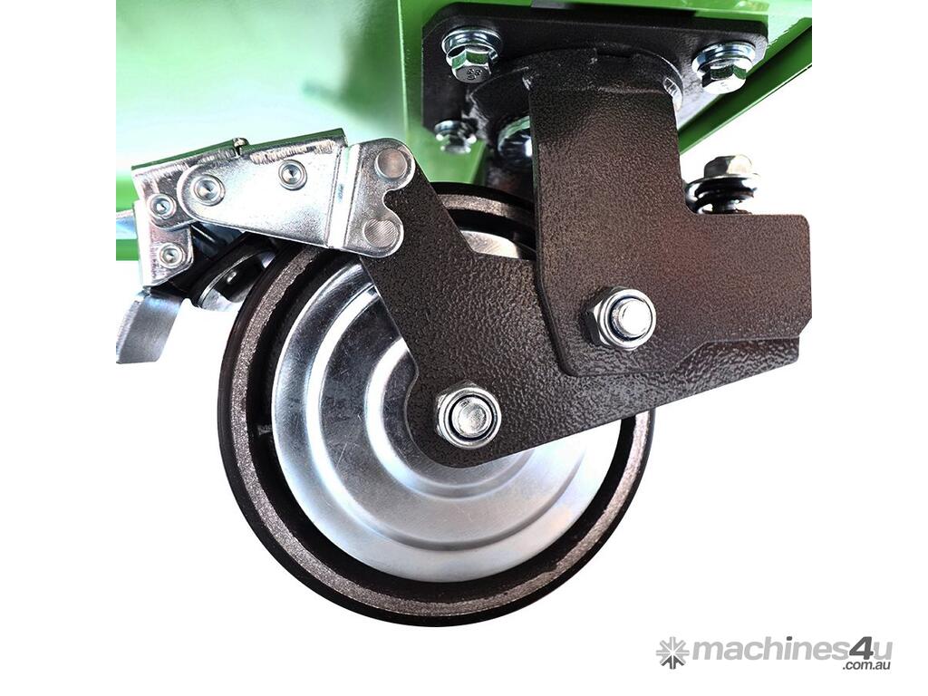 5” high and 2” wide caster wheels (2 fixed, 4 locking swivel) provide easy mobility when fully loaded