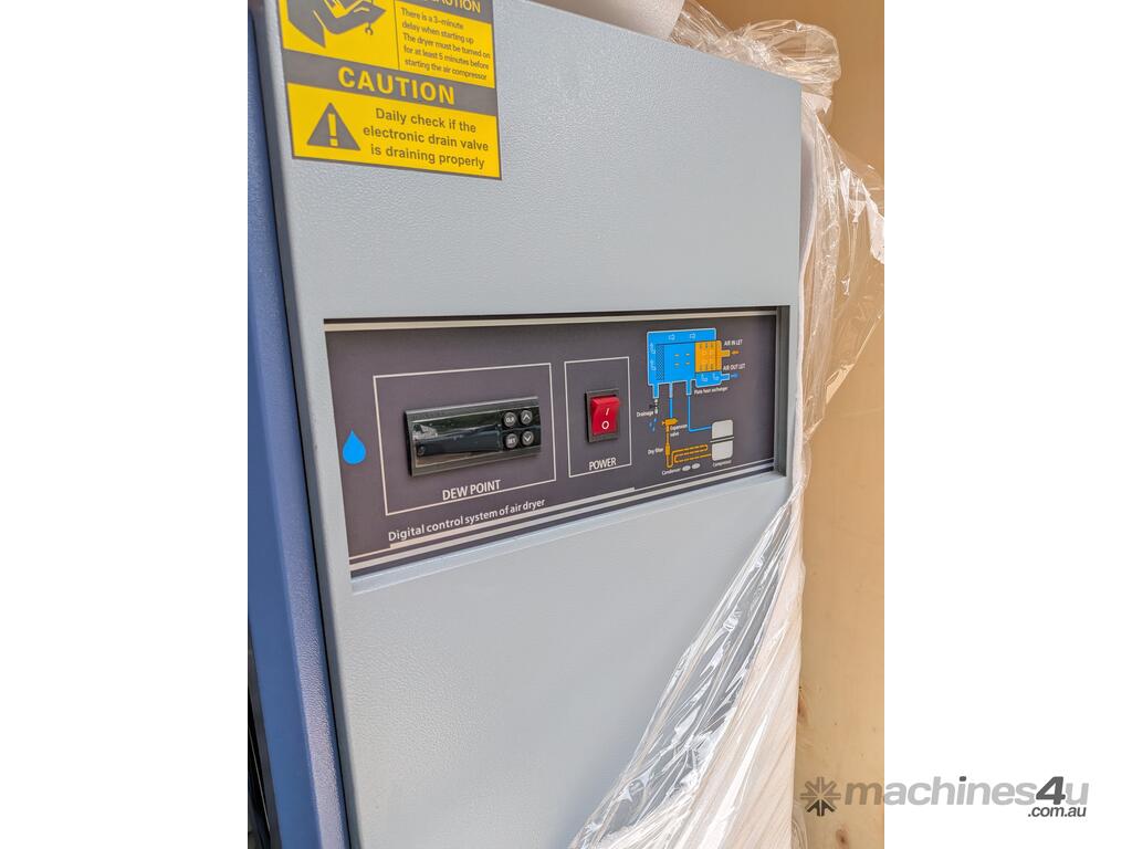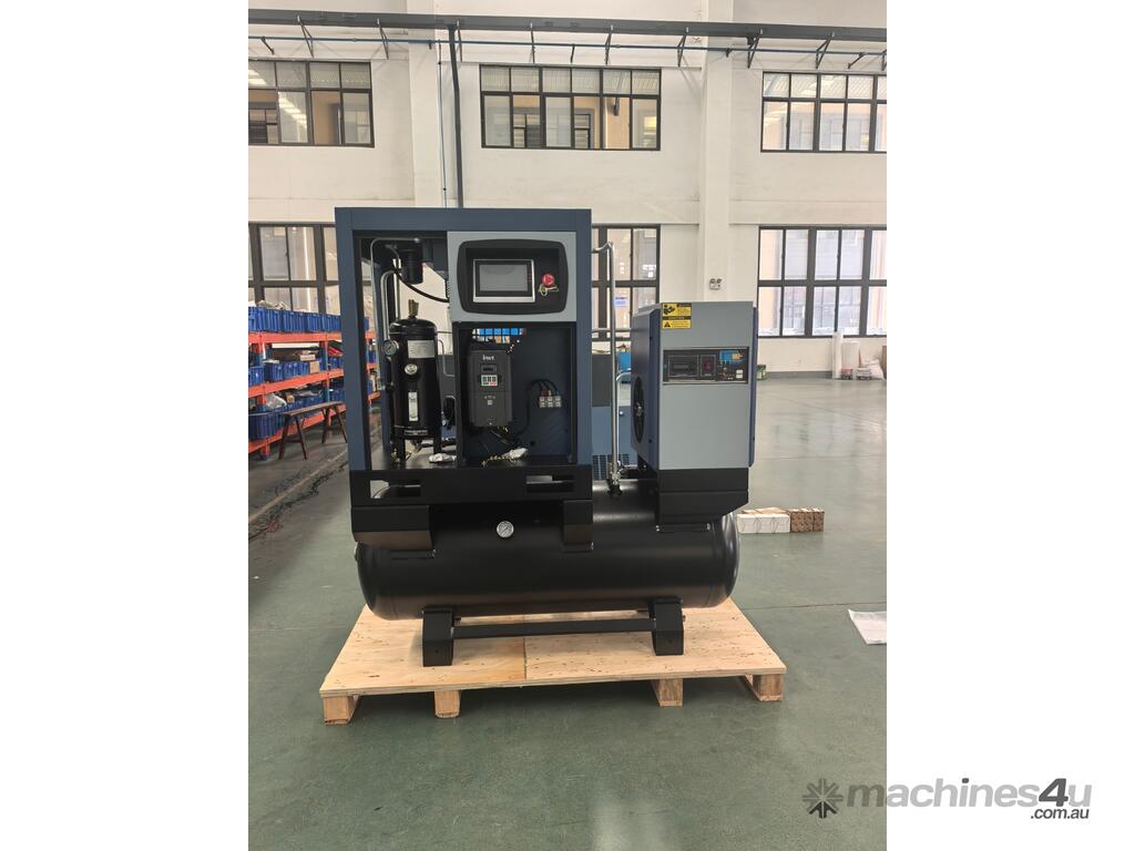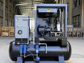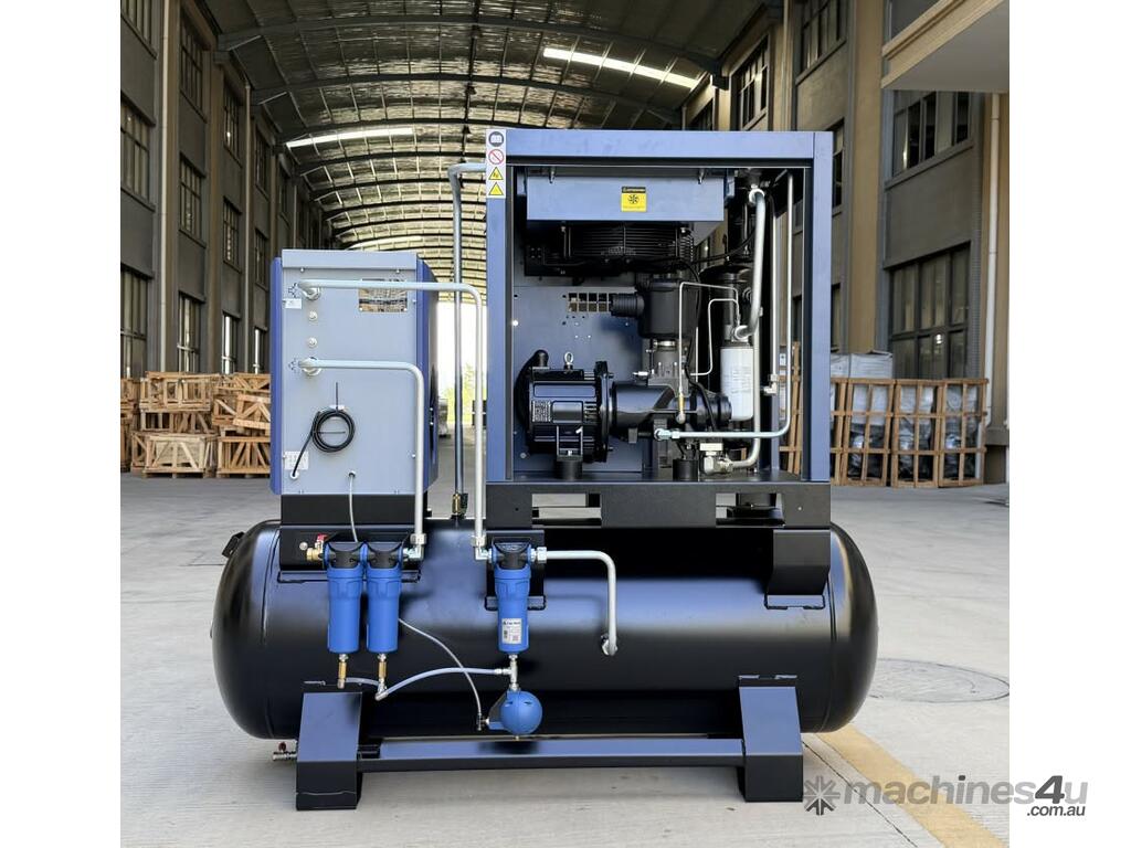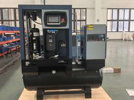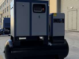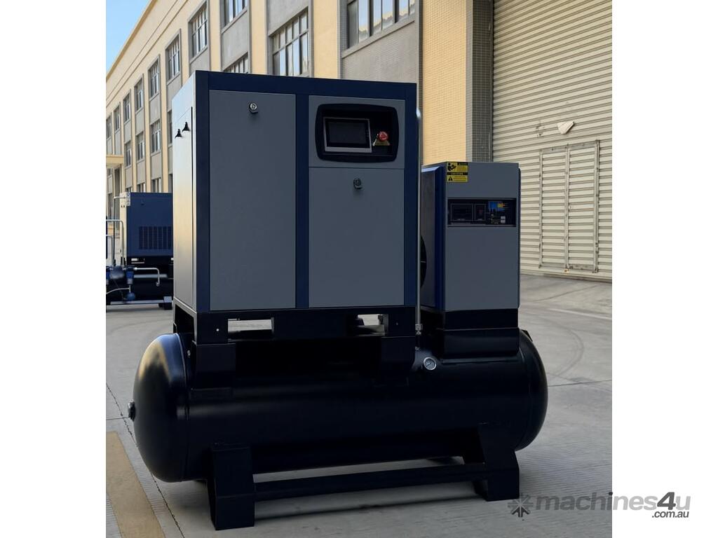Brand new 15HP rotary screw compressor with integrated refrigerated air dryer and 500L receiver tank.