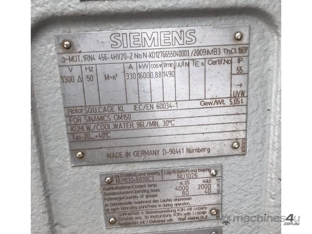 1600 KW 2200 HP 4 pole 1490 rpm 3300 volt Foot Mount 450 frame AC Siemens Electric Motors