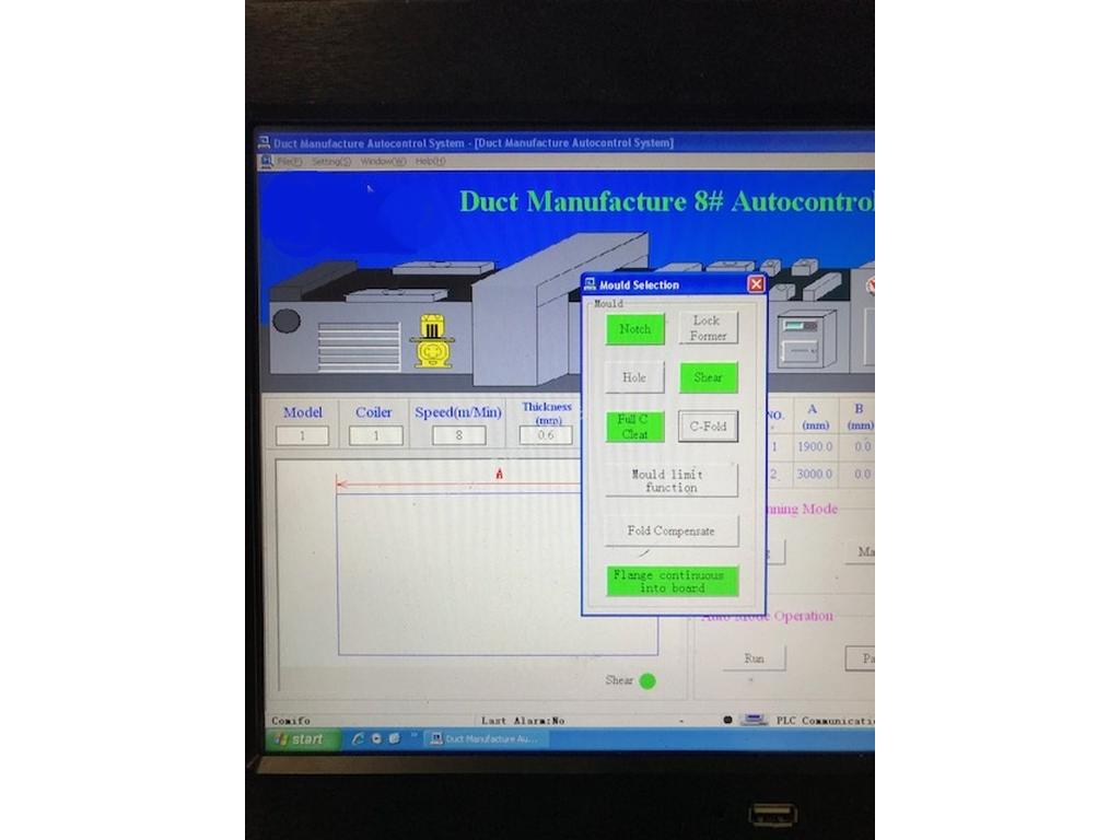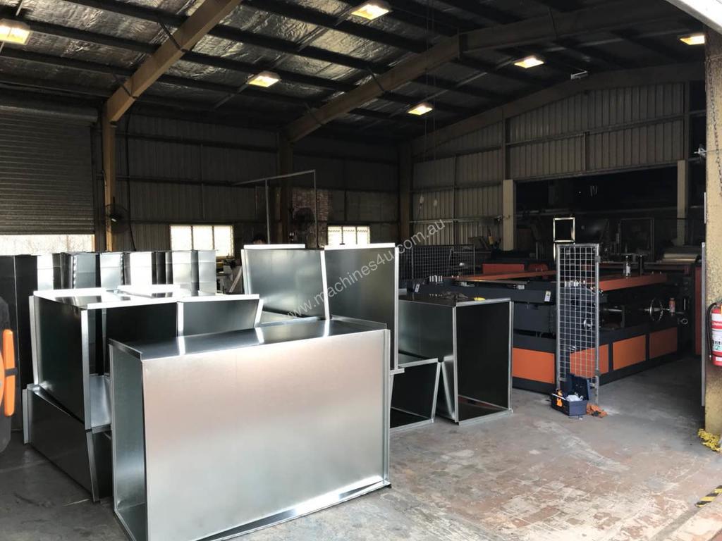 HVAC Duct Manufacturing Line 6. Model: SM-CAL6-1.2-1600- Compact Series. 9 Function Heavy Duty Model Decoiler, Straightener, Beading, Notching, Punching, Shearing, Pittsburgh, Duplex TDF & Folding.