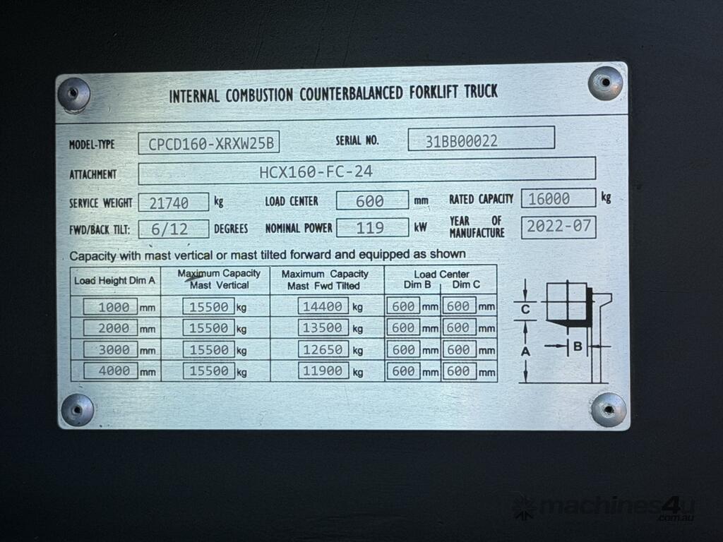16T Hangcha Counterbalance Forklift :      $105,000 AUD($115,500 Inc. GST)