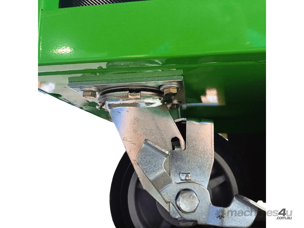 6” high and 2” wide caster wheels (2 fixed, 4 locking swivel) provide easy mobility when fully loaded