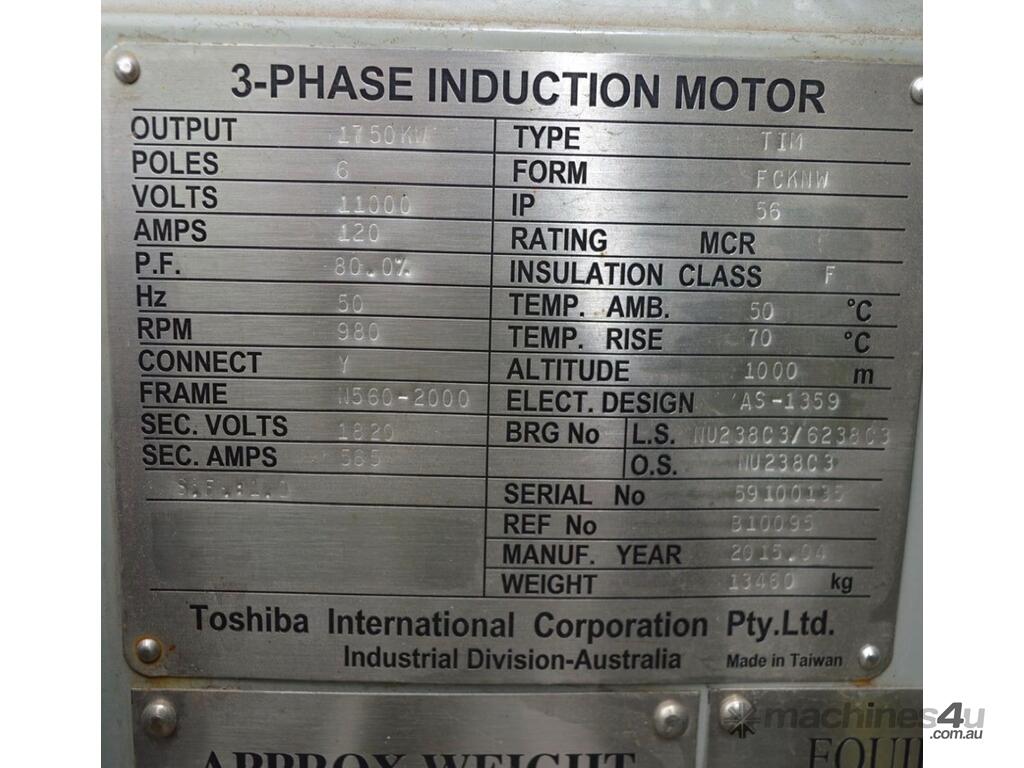 1750 kw 2350 hp 6 pole 980 rpm 11000 volt Foot Mount 560 frame Toshiba Slip Ring Electric Motor