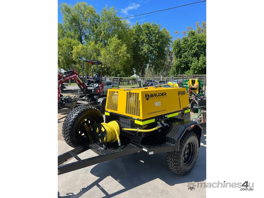 Compact yet powerful, the SP5000 Kubota-driven rotary screw compressor pumps out 176 cubic feet per minute – the ideal flow rate for effective use in many applications in road construction, civil, and earthmoving industries. With a unique cooling system and filters designed for hot and dusty conditions, the Brüder SP5000 thrives in high ambient temperatures, ensuring reliability during long, hot days on the job.