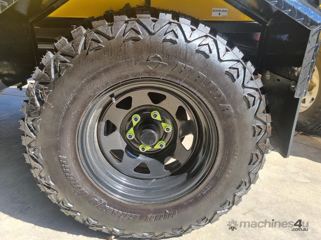 Large steel wheels with all-terrain tyres and a spare included as standard