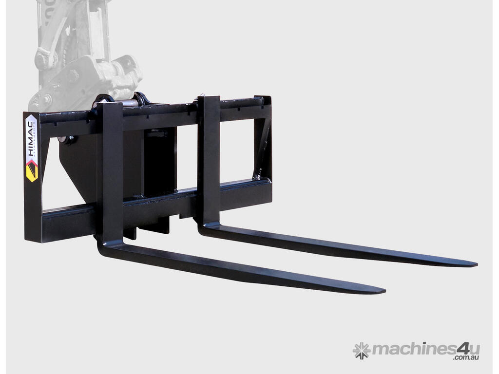 Himac Excavator Forks feature a robust build with adjustable tynes to suit a wide range of loads.The innovative latch-locked system allows varying tyne distances, set safely in place with reduced bounce. Whether it be brick packs and pallets to larger objects, these excavator forks will get the job done.