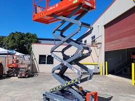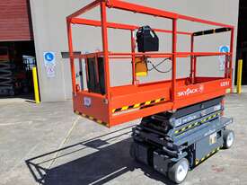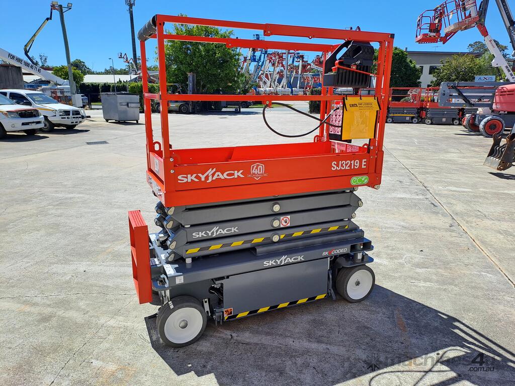 New Skyjack SJ3219 Electric Drive Slab Scissorlift , AGM Batteries fitted as standard . LED Beacon and White noise Buzzer . With a 7.8m working height and 227kg platform capacity and will drive at full height . Platform size 1.55m x 0.66m and 0.91m roll out extension Deck .