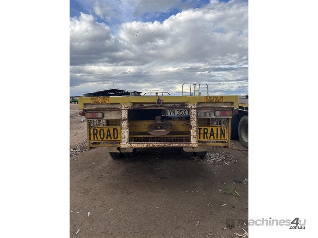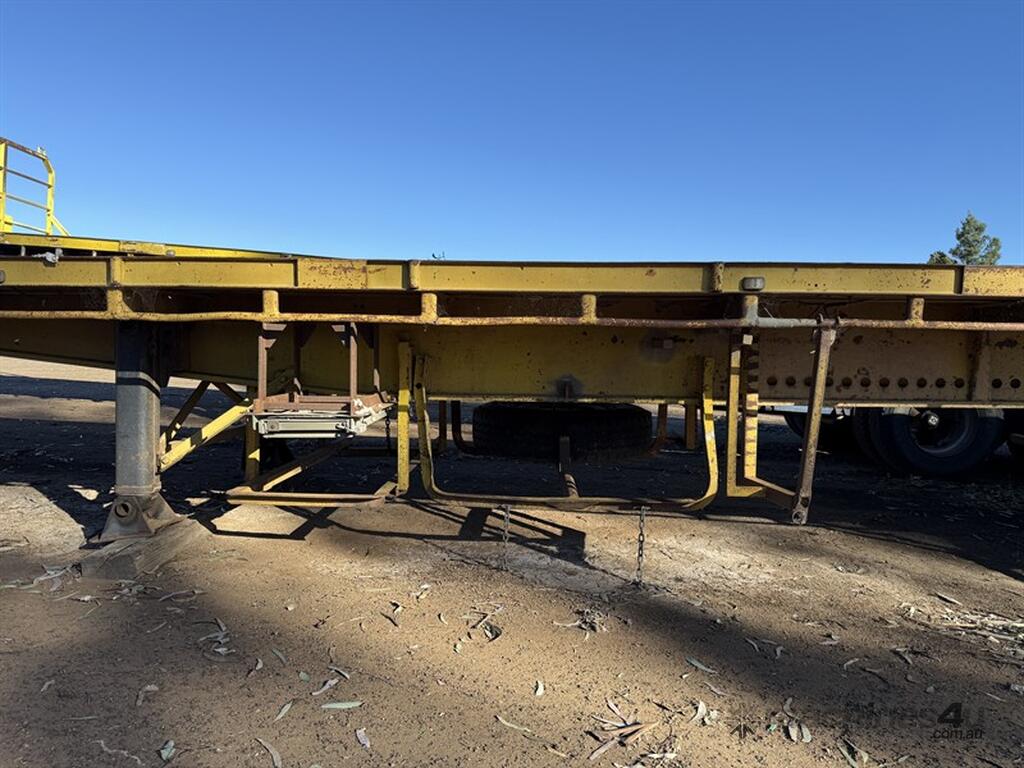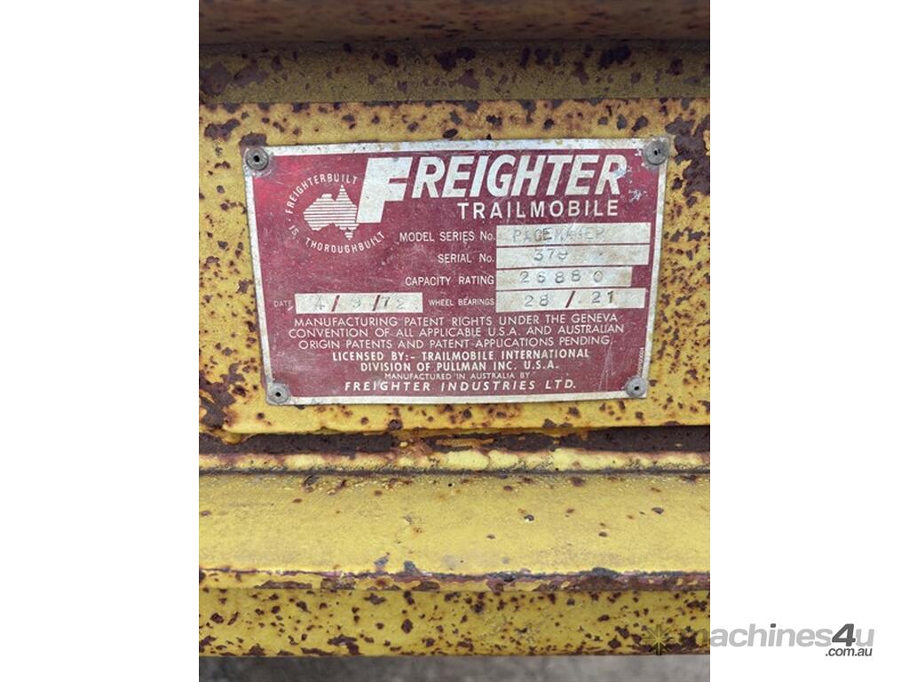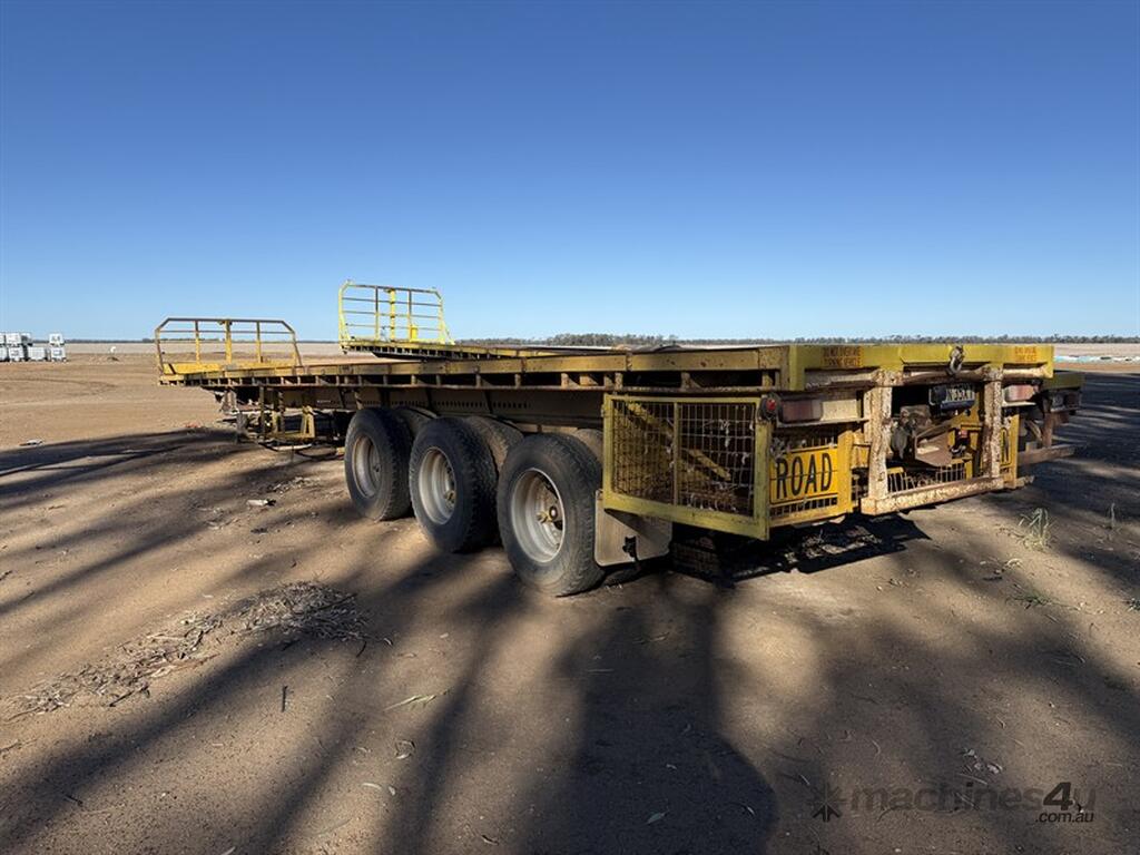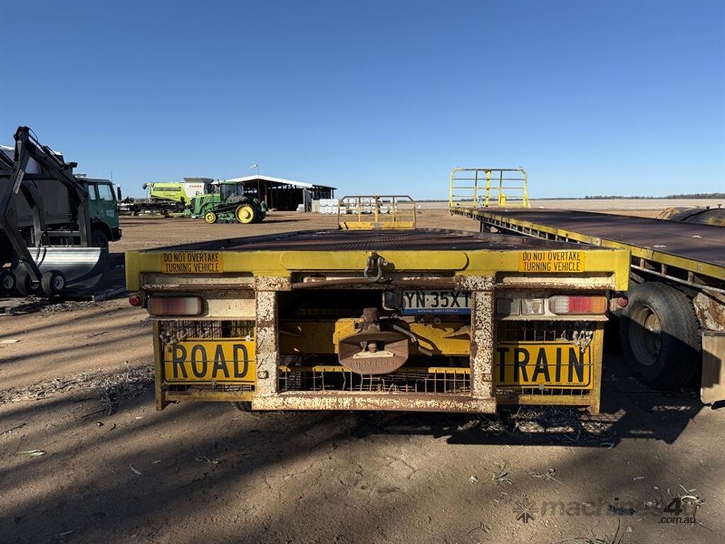 1972 Freighter Flat Top Trailer. 40' foot trailer, tri-axle, spring suspension, 28T GVM, 6.15T Tare Mass. Registration expired in 2024. Located at Pallamallawa NSW, available at MRE Auctions online sale.
