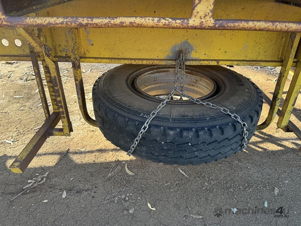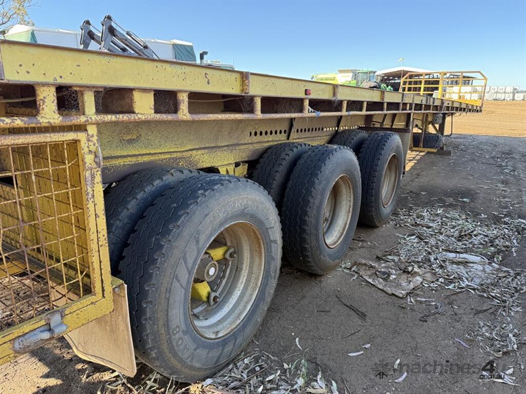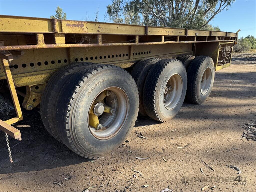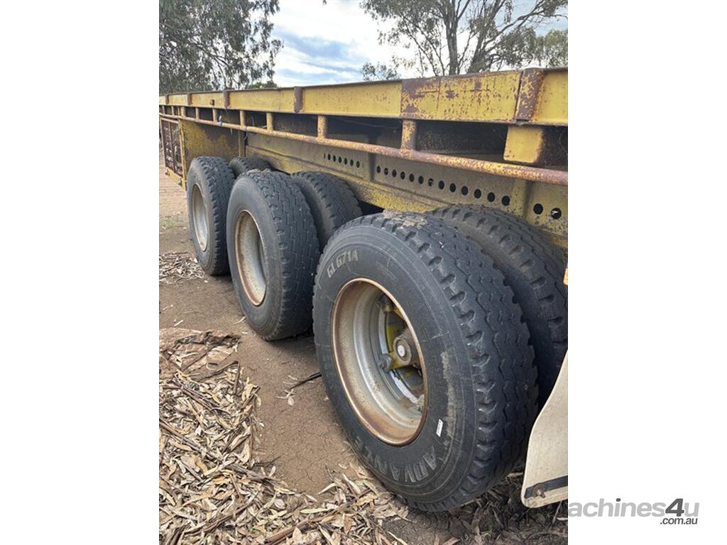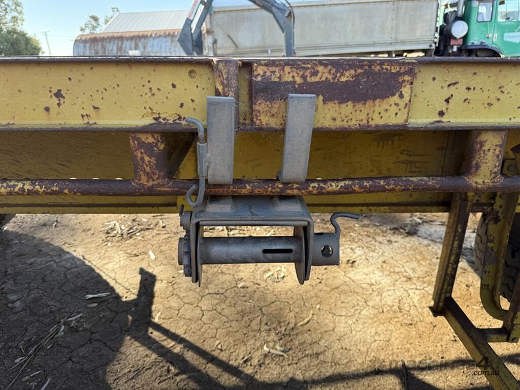 1972 Freighter Flat Top Trailer. 40' foot trailer, tri-axle, spring suspension, 28T GVM, 6.15T Tare Mass. Registration expired in 2024. Located at Pallamallawa NSW, available at MRE Auctions online sale.