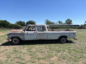 1975 FORD F100 CUSTOM UTE, S/N: 35505, E/N: ###, ### KM SHOWING. VEHICLE INOPERABLE. LOCATION: OFFSITE IN EMERALD, QLD 4720. INSPECTIONS & COLLECTIONS: BY APPOINTMENT ONLY. ENQUIRIES: JOHN MCDOUGALL ON OR JOHNEMERALDAUCTIONCENTRE