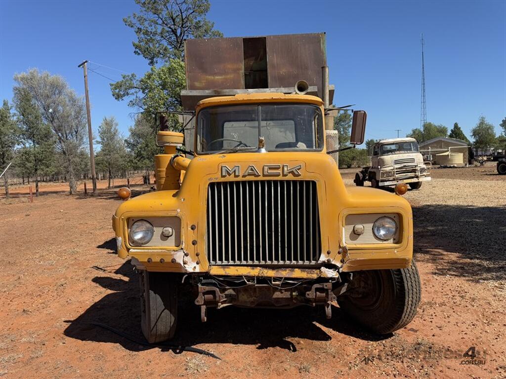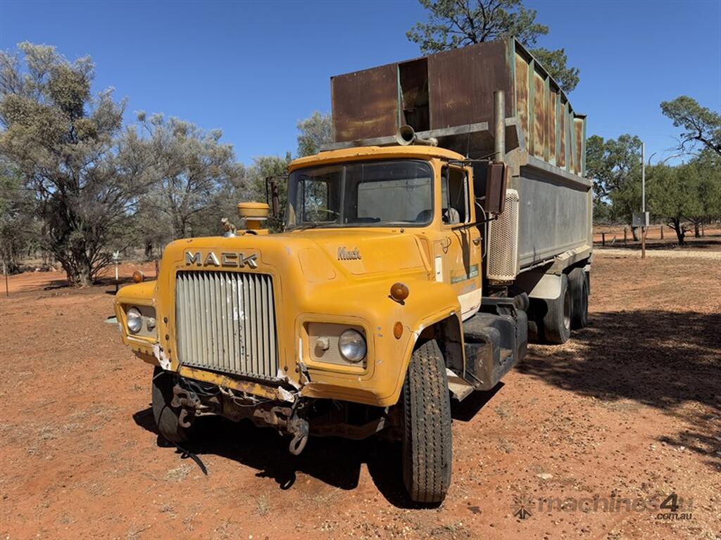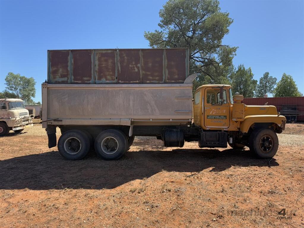 Mack ENDT675 237HP Maxidyne engine, Chassis No: 45974. Maxi Torque 5-speed main box with twin stick auxiliary gearbox. Mack 34000 diffs on Camelback suspension. Aluminium tipper with grain top and rear grain door. Truck is operational but not roadworthy. There is visible cab rust and some bonnet fibreglass damage. Starts, runs, and drives and ideal for major restoration. Please note that the air cleaner hose was removed at time of inspection and will be replaced before pickup. Truck is sold unregistered as