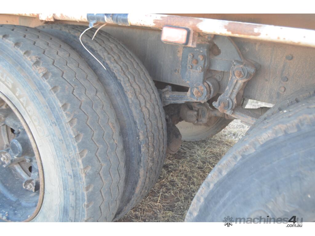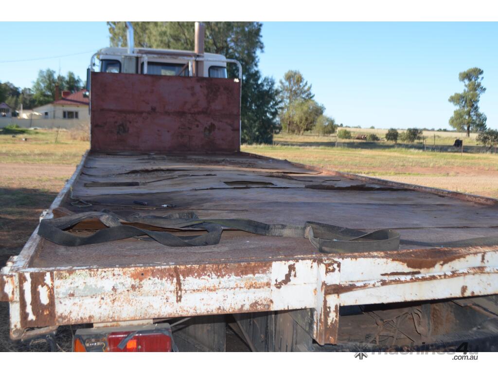 Good farm truck runs and drives. Has had a grouper on the back. Un-registered. 10 speed synchro gearbox. Bogey drive. Comes with new checker plate for the tray but not fitted. 7m x 2.4m tray