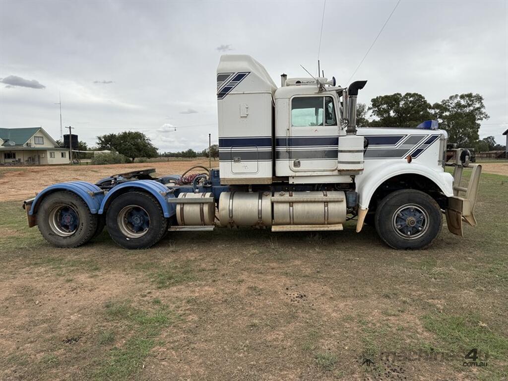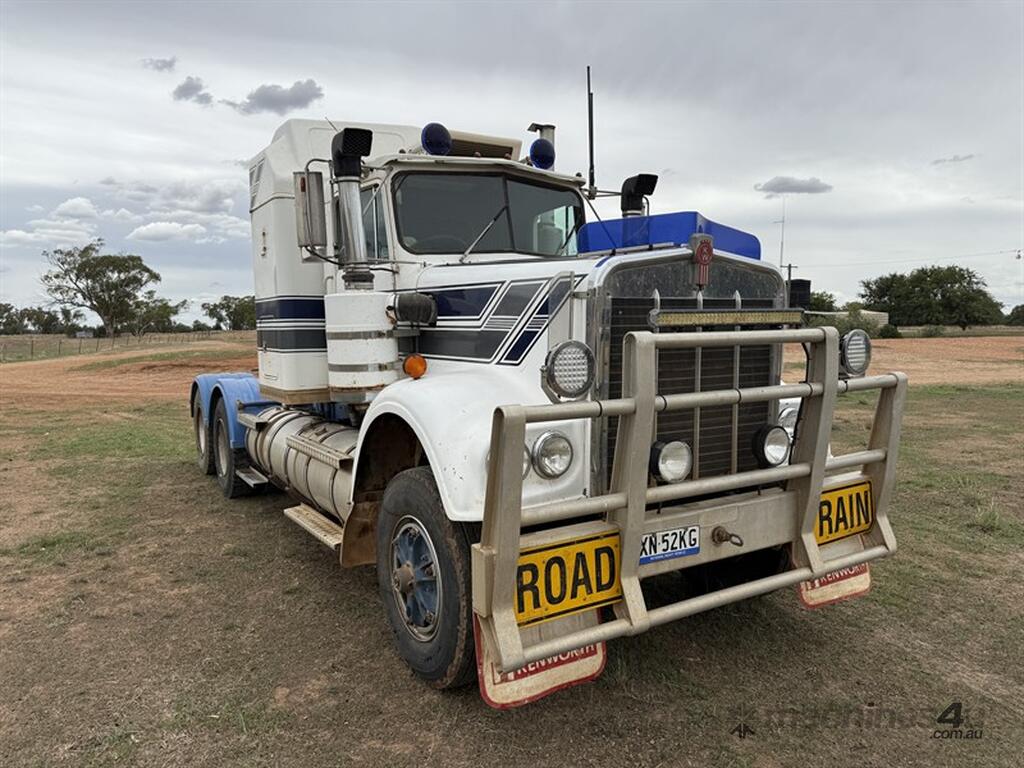 1980 KENWORTH W925 AR, VIN: 404607, 83T Rated, GVM: 25400KGS, 18 sp O.D Roadranger, Detroit Silver 8V-92TTA, PTO & Hydrualics Fitted, Eaton 44,000lb Diffs on Diff Ration 4-62 on a KW 6-rod suspension, Spider Rims, Front Diff replaced last season. Replaced pinion bearing & seal in rear diff at same time. New Uni joint in jack shaft also Bull Bar, Driving Lights fitted. 36" Sleeper fitted with fan. Red Dot Air Conditioner fitted on cab roof. 2 Deepcycle batteries for fridge & fan. Seperate power. Fridge not i