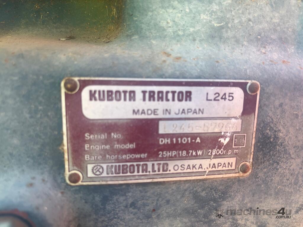 CP: CIRCA 1982,Kubota,L245,Tractor,3 Cyl,Diesel,Odometer not visible,Hourmeter not visible,Unregistered,Serial No: L245-57966,ROPS No: ,Sold with No Plates