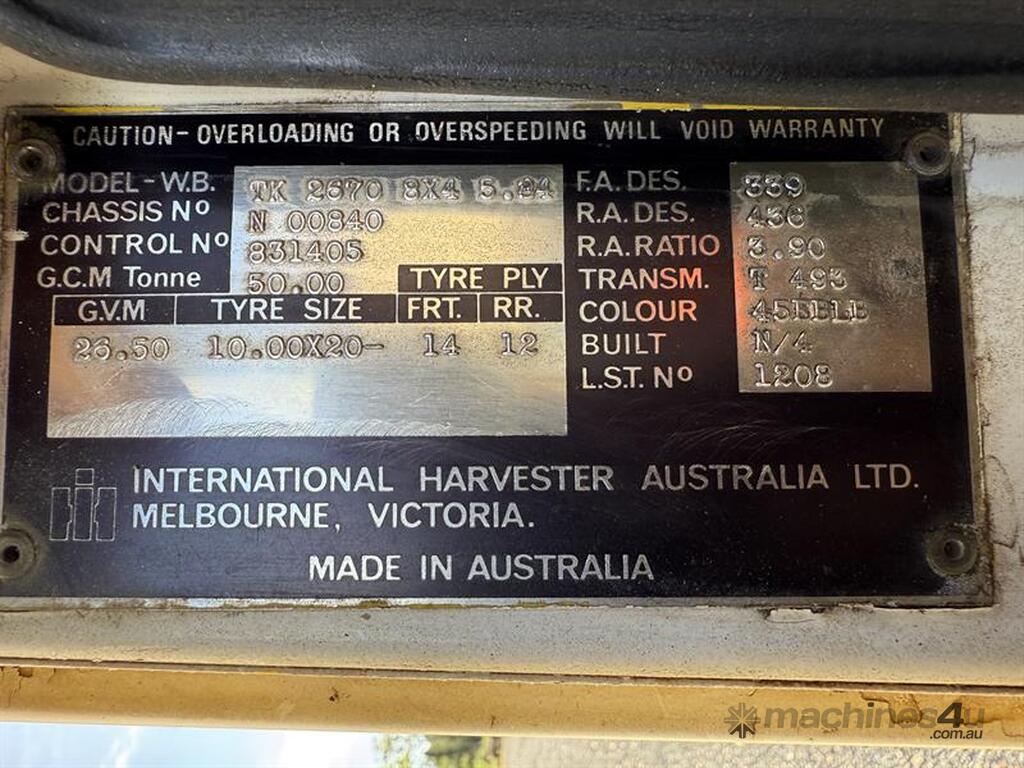 1983 INTERNATIONAL T2670 TILT TRAY TRUCK, VIN: N00840, E/N: 23178182, 684,106 KM SHOWING, 1,393 HOURS SHOWING, NO REGISTRATION, NO COI. LOCATION: NEAR GIN GIN, QLD 4671. INSPECTIONS & COLLECTIONS: BY APPOINTMENT ONLY. ENQUIRIES: JOHN MCDOUGALL ON OR JOHNEMERALDAUCTIONCENTRE