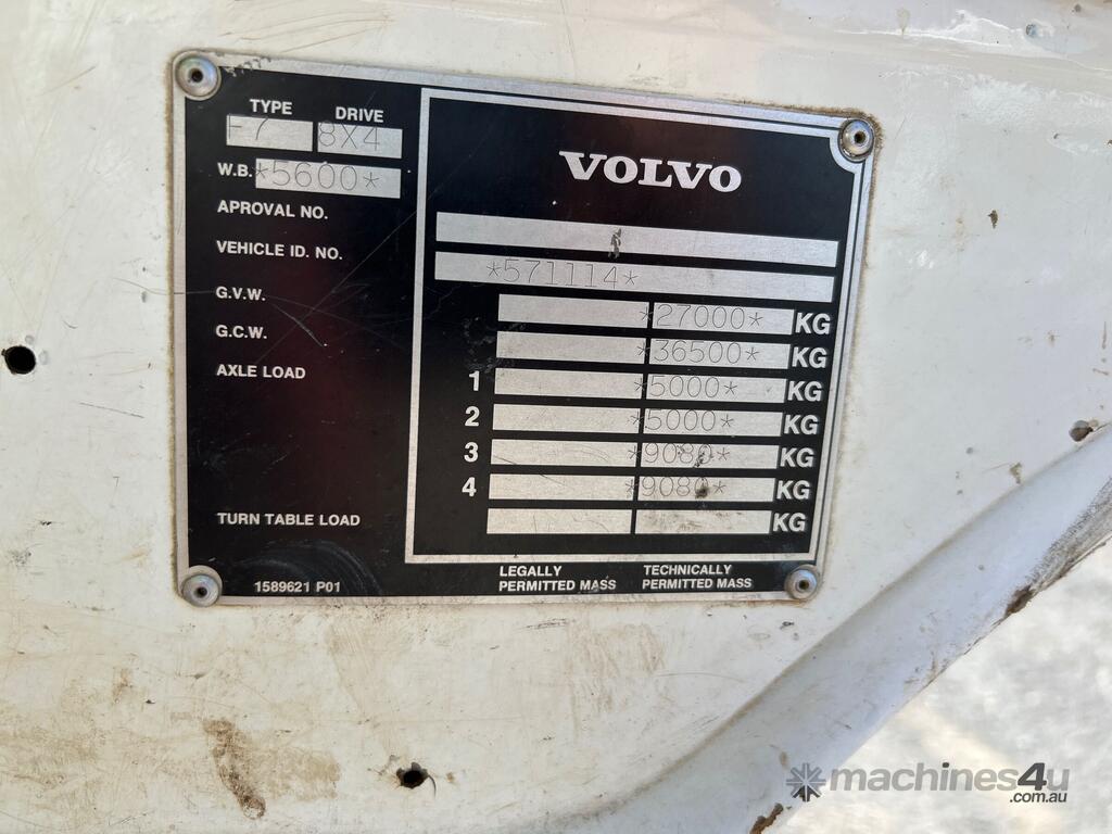 CP: 02/1983,Volvo,F727,Water Tanker,Manual,Airbag Suspension,6 Cyl,Diesel,8 Gears,706189 (Kms. Showing on Odometer),Hourmeter not visible,Colour: White,Unregistered NSW,Chassis: 571114,Key No: 25,GVM: 27000,GCM: 36500,Sold with No Plates,Key No: 25