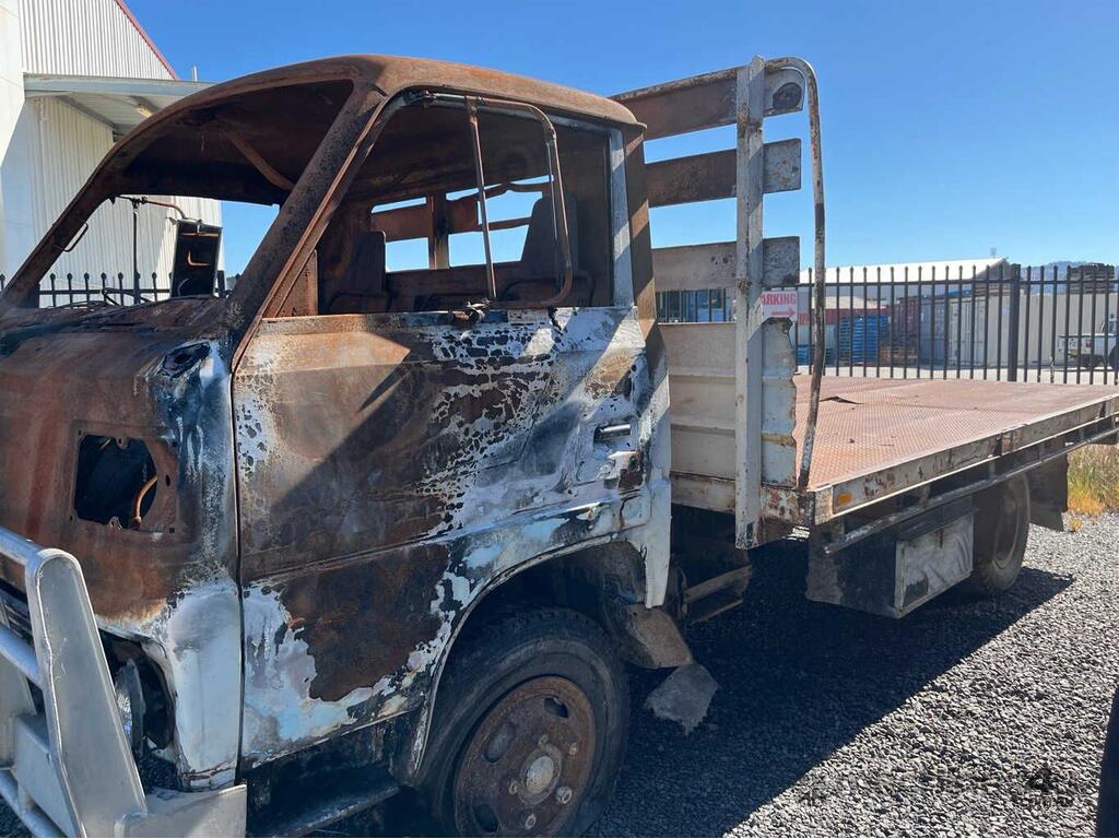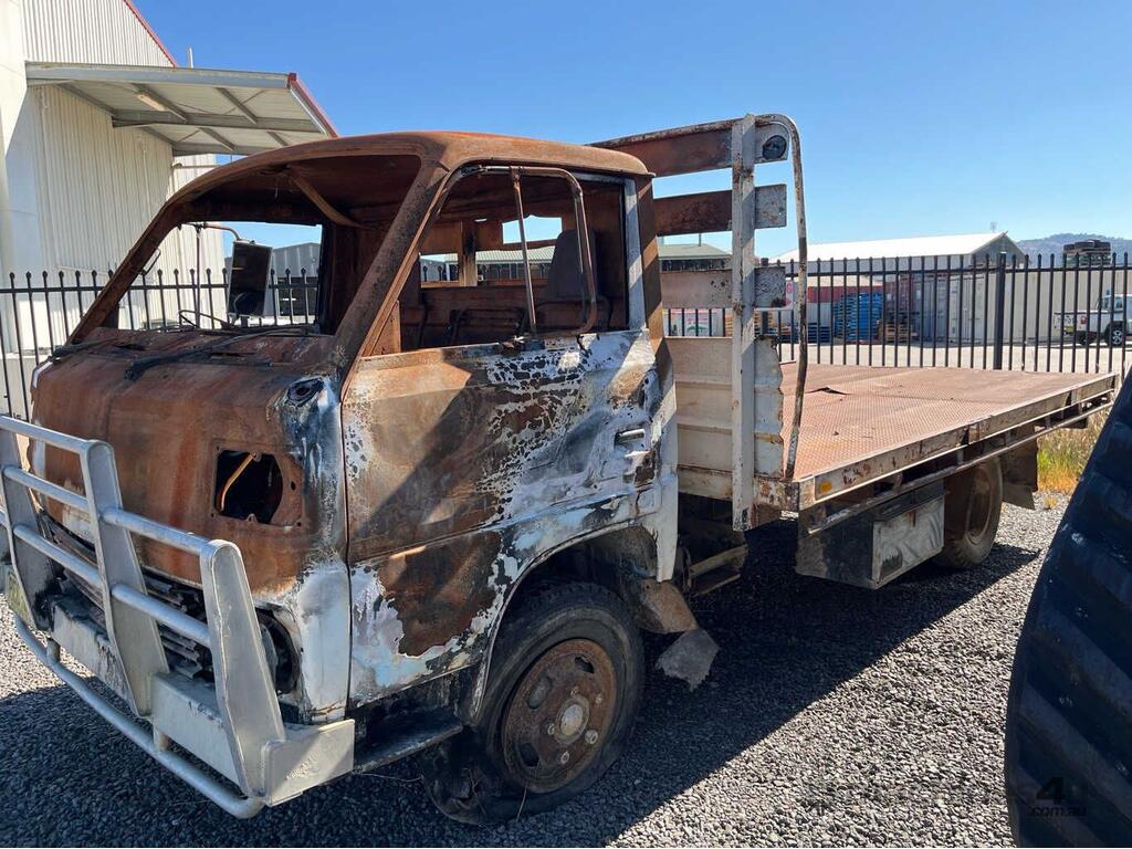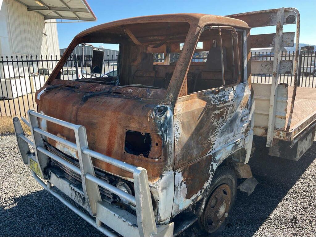 CP: CIRCA 1984,Mitsubishi,Canter,Table Top (Day Cab),Manual,Leaf Spring Suspension ,4 Cyl,Diesel,Odometer not visible,Hourmeter not visible,Colour: Burnt,Rego. No: NP(PEC264), Unregistered NSW,Sold with No Plates,WOVR Status: Repairable Write-Off,Incident Type: Fire