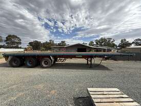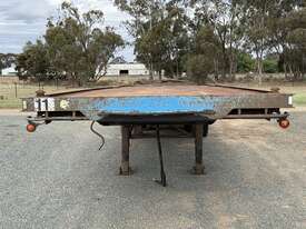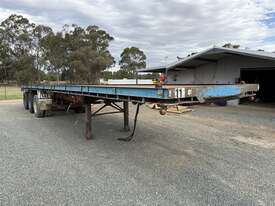 1985 HAULMARK 41' Flat Top Trailer CHASSIS: 8407. Checker plate floor 5" combing rails, container pins, rear air hook up at turn table, ring feeder and air connection on rear of trailer, GP axles on spring suspension, Spider rims, 10' 1" spread binder track with 10 binders (no straps), road train signs on back,water tank, double spare tyre rack. Located , West Wyalong NSW.